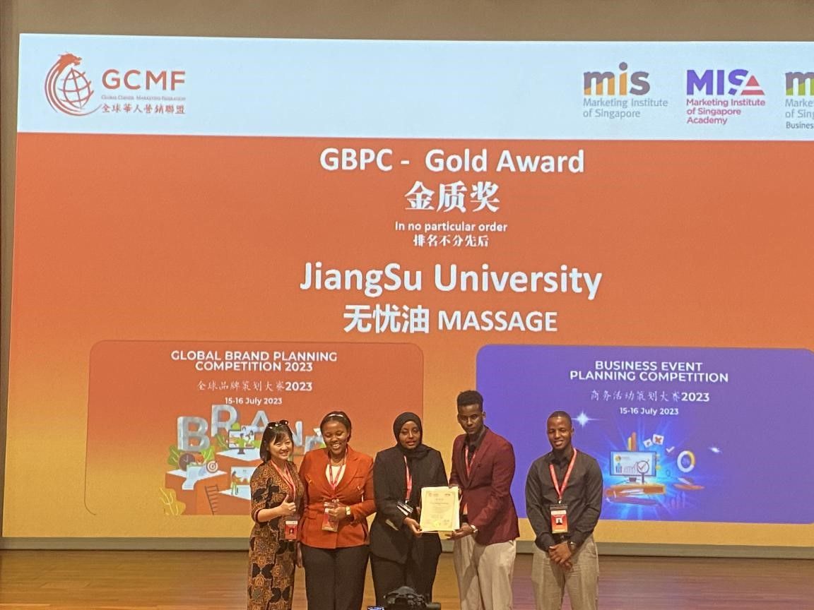 7月15日至16日,2023年全球品牌策划大赛总决赛在新加坡举行。比赛由中国国际贸易促进委员会商业行业委员会和全球华人营销联盟主办。我校来华留学生组建的“无忧油”团队获得金奖(大赛仅4项,来华留学生团队唯一)和最佳团队展示奖(大赛唯一)。这是我校学生首次入围总决赛,首次获得金奖。