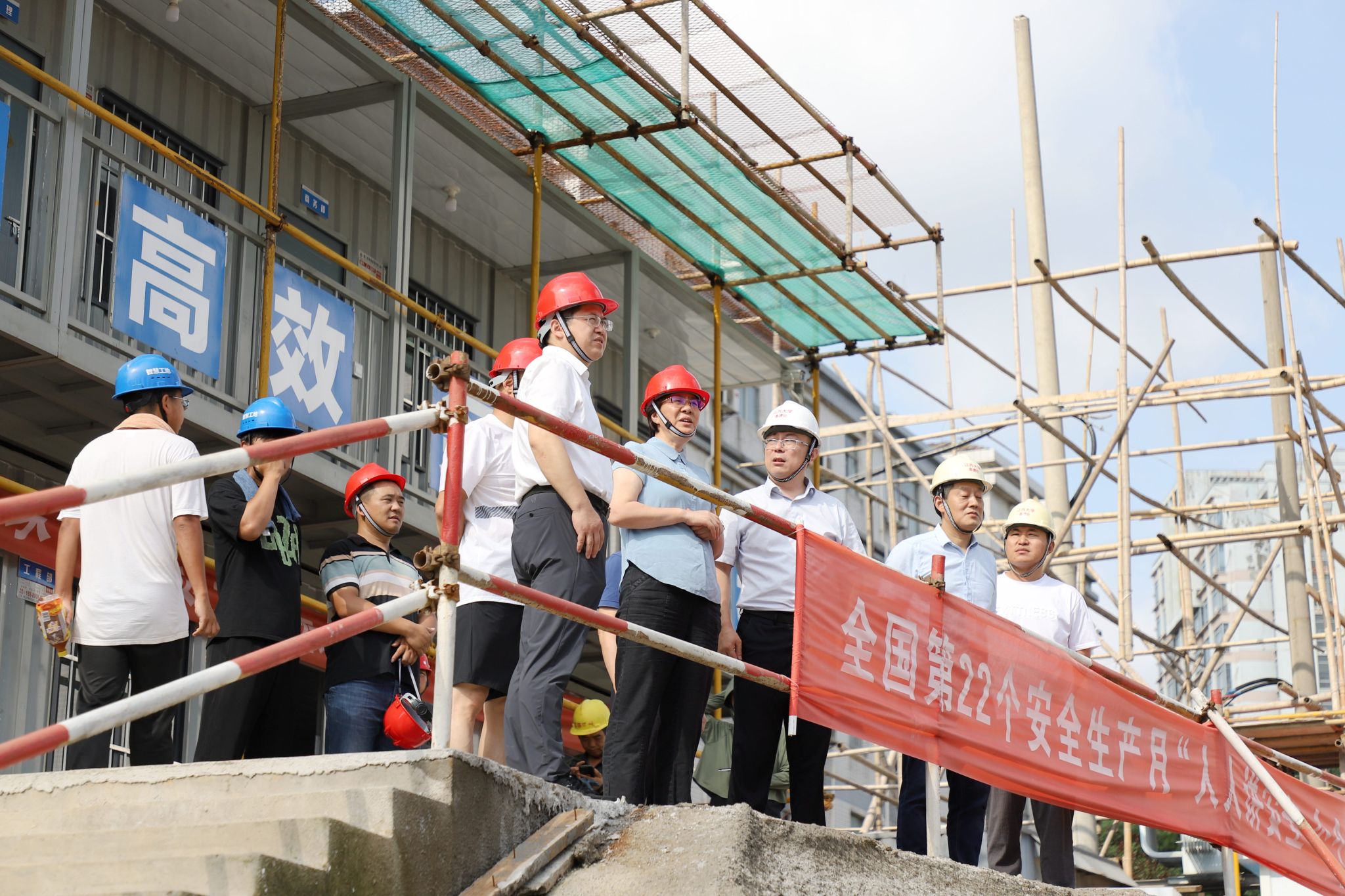 7月31日,校长邢卫红、副校长邹小波一行对青年教师周转公寓项目、学生宿舍A组团项目、学生宿舍暑期出新项目等建设情况进行现场调研,慰问一线施工与管理人员。