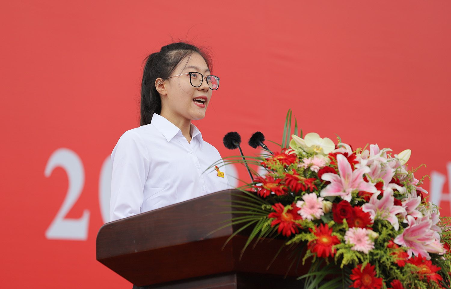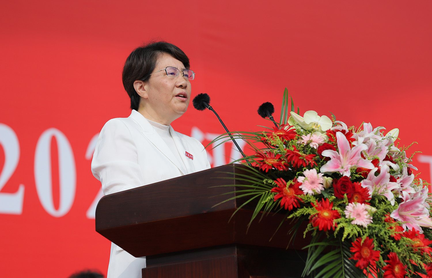 典礼上,校长邢卫红讲话,代表学校向全体2023级新生表示热烈欢迎,向辛勤指导训练的军训教官致以崇高敬意。邢卫红说,开云足球体育_开云足球(中国)历史悠久、底蕴深厚,鸿儒云集、人才辈出,特色鲜明、使命光荣,同学们在这里求学逐梦,故事会更加精彩,将来大有可为。邢卫红用三句话与全体新生共勉:一是“博学”,把学习作为第一任务,在博学善思中筑牢成长根基;二是“求是”,把创新作为第一本领,在求是探索中增长智慧才干;三是“明德”,把人品作为最高学历,在明德笃行中担当时代大任。邢卫红希望全体新生惜时如金、晴耕雨读,在“博学、求是、明德”校训和“自强厚德,实干求真”开云足球体育_开云足球(中国)精神指引下,创造更多精彩,成就美好将来。她也提出一个小希望:同学们要养成习惯,每天给家人报平安、与家人分享校园生活。