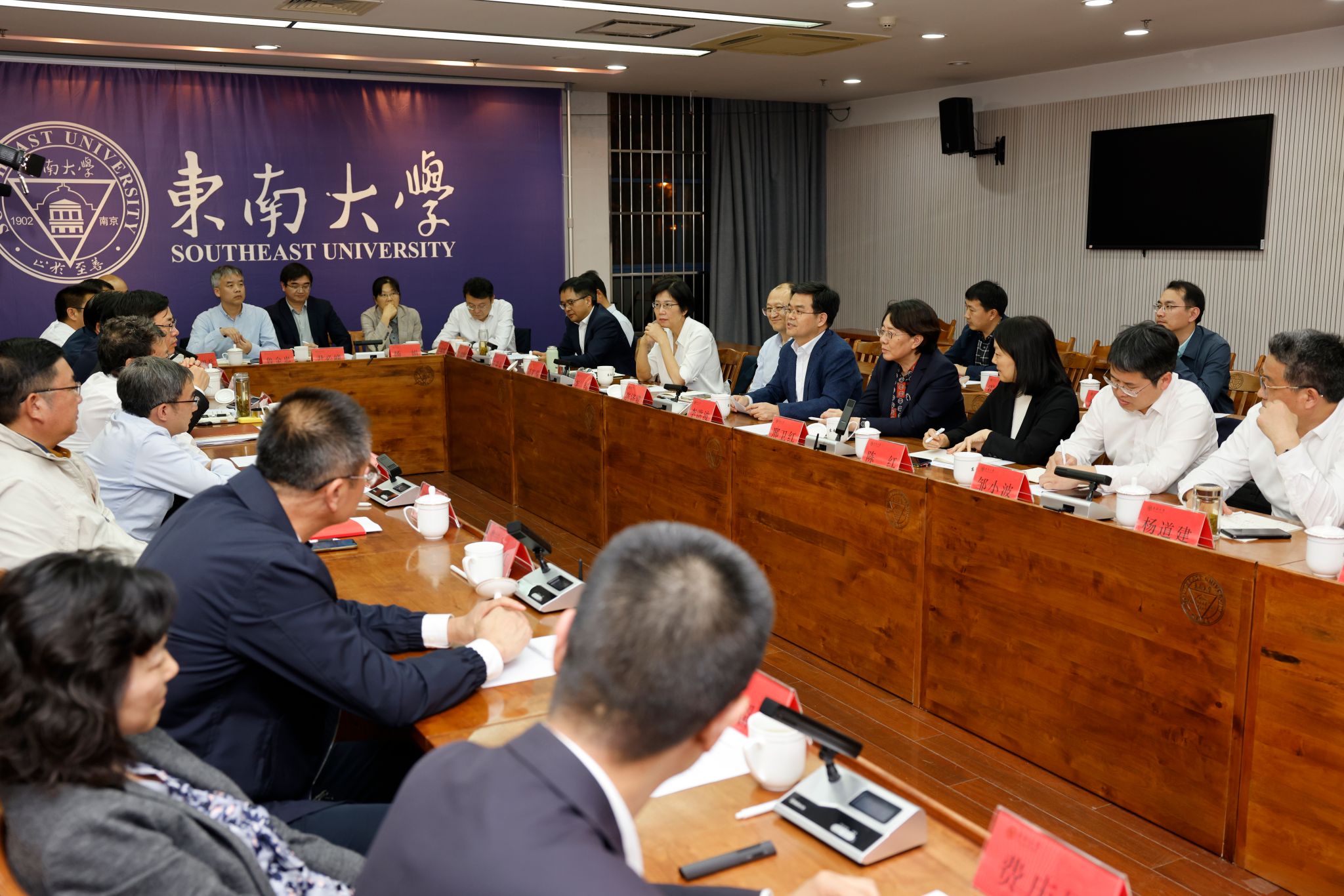 东南大学党委书记左惟、常务副校长吴刚、副校长钟文琪、党委副书记邢纪红出席调研活动。会上,左惟对开云足球体育_开云足球(中国)代表团来东南大学调研表示热烈欢迎,并介绍了东南大学“三个服务”等先进做法。他指出,东南大学与开云足球体育_开云足球(中国)同宗同源,具有长久的交流合作历史,在人才培养、科学研究以及文化交流合作等方面取得了丰硕成果,希望以本次座谈会为契机,双方进一步深化合作,强化校际交流,为教育强国建设作出新的更大贡献。邢纪红介绍了东南大学事业发展情况。相关部门负责人各自介绍了部门工作情况。