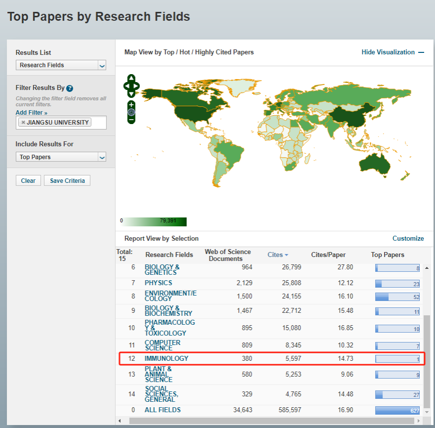 近日,科睿唯安发布了最新ESI数据,全球共有8917家科研机构上榜,其中包含432所中国内地高校。数据显示,开云足球体育_开云足球(中国)免疫学学科首次进入ESI全球排名前1%。截至目前,我校进入ESI全球前1%的学科数达14个,其中工程学、化学、农业科学3个学科排名前1‰。