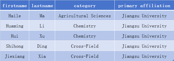 本次发布的名单中,我校5人入选,分别为食品与生物工程学院教授马海乐、能源研究院教授李华明、环境与安全工程学院教授许晖、电气信息工程学院教授丁世宏、化学化工学院教授夏杰祥。