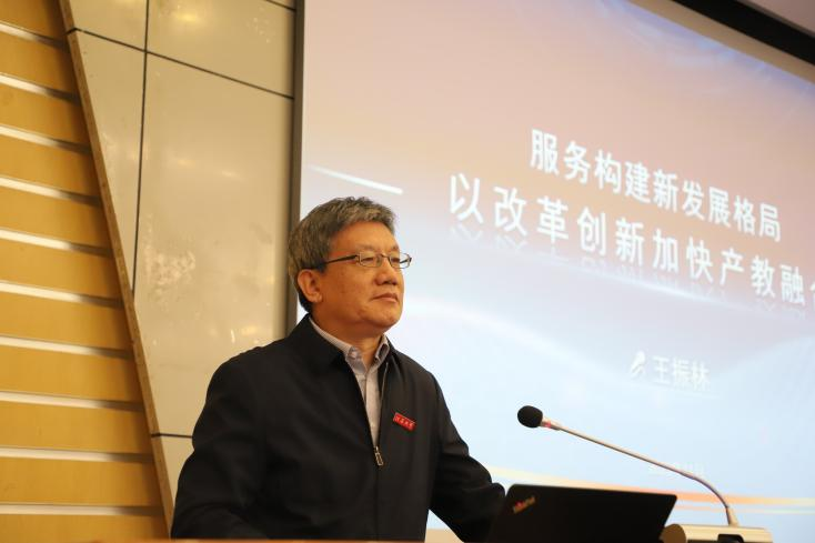 授聘仪式后,王振林作“构建新发展格局背景下的产教融合”报告,讲述了北自所在产教融合方面的探索与努力,提出国家构建新发展格局对高校和企业提出了更高的要求,高校要结合产业发展现状强化学科布局,企业要注重与高校的联合创新,强调了人才的继续培养。