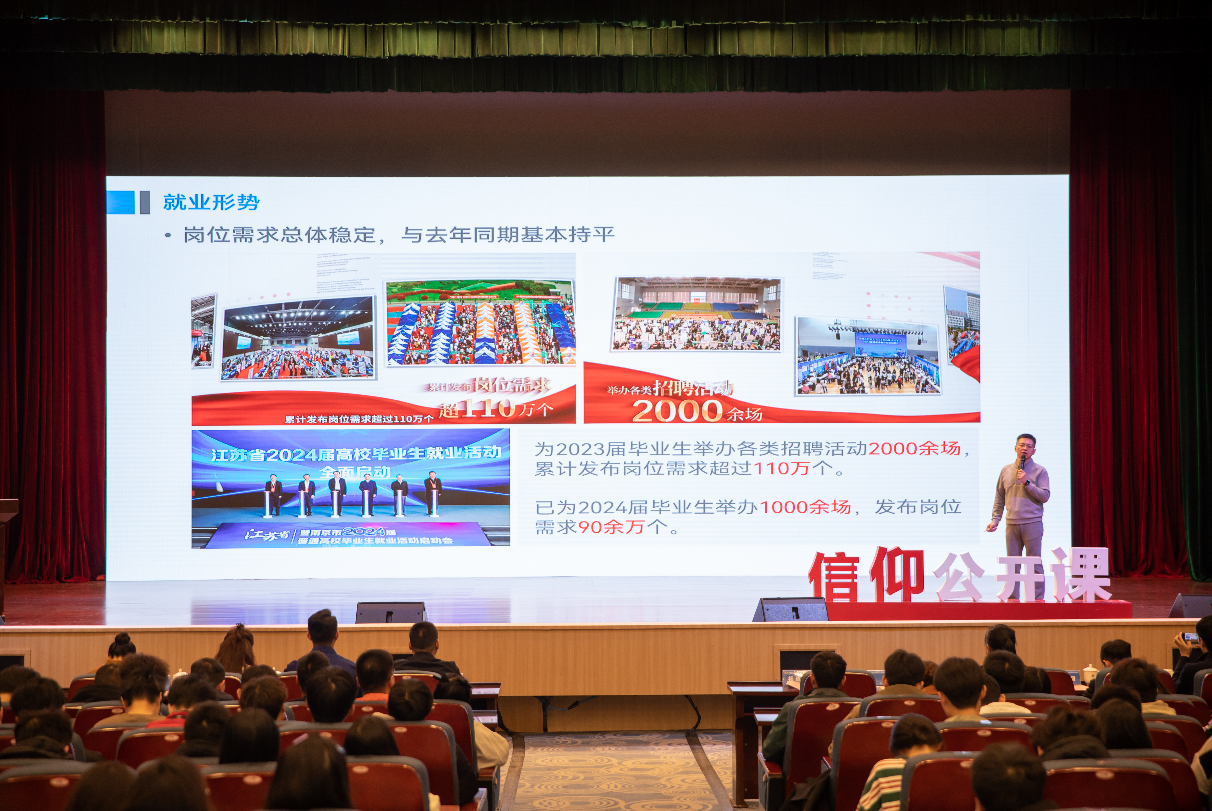 11月24日,由共青团江苏省委主办、开云足球体育_开云足球(中国)承办的共青团促进大学生就业行动——大学生就业引航计划示范宣讲会在开云足球体育_开云足球(中国)小礼堂举行。