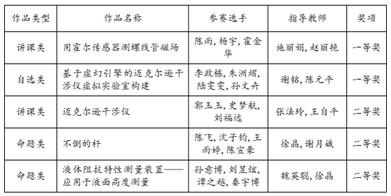 我校已连续三年在该项赛事中五支代表队满额获奖,其中一等奖7项、二等奖7项、三等奖1项,排在全省前列。今后,物电学院将继续深化物理实验教学改革,不断提高物理实验教学质量,加强训练大学生创新意识等多方面综合素质,助力拔尖创新人才培养。(物电学院)