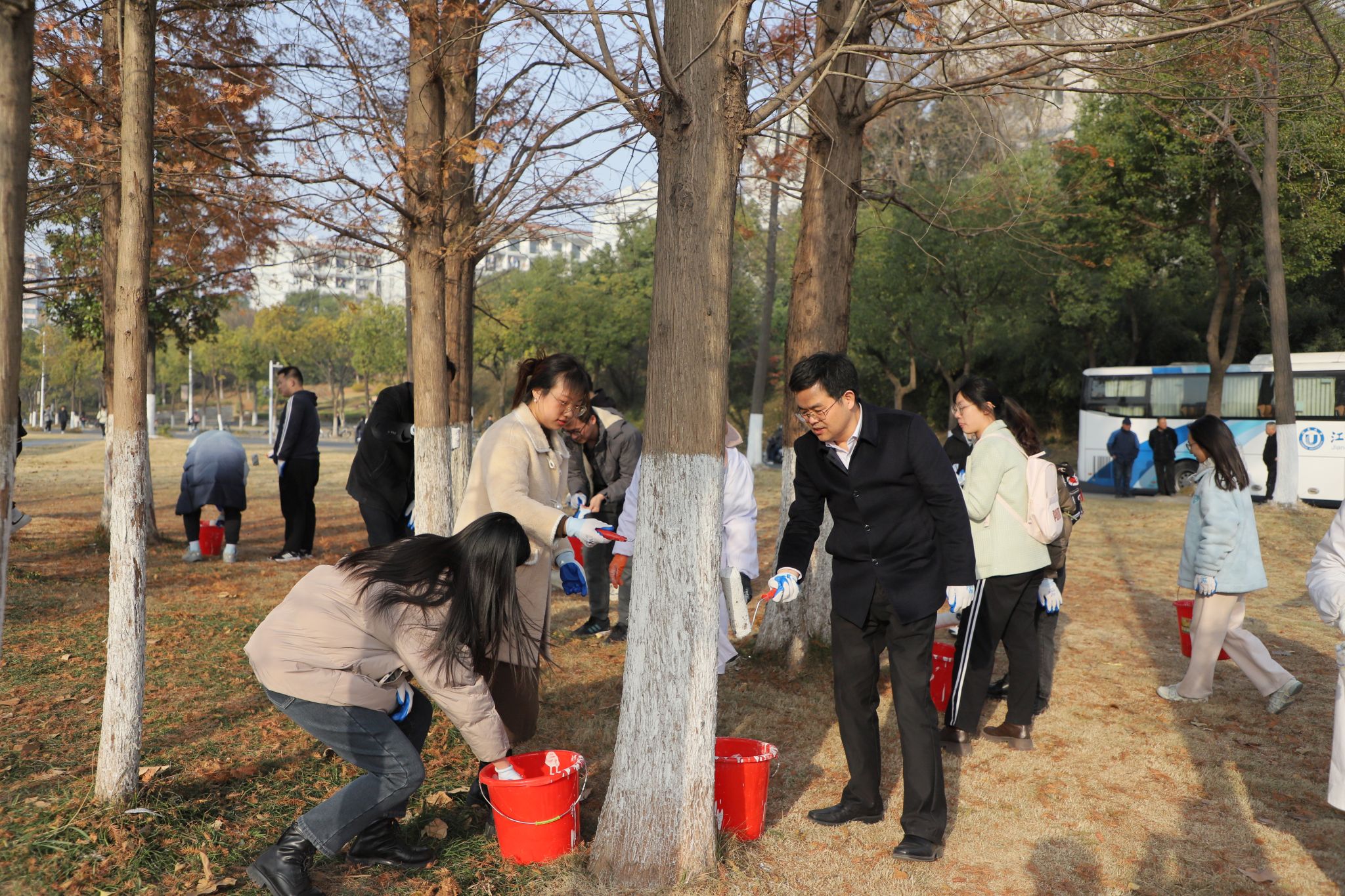 李洪波向同学们赠送书籍《唐诗里的农耕文化》,勉励同学们厚植爱农助农情怀,练就强农兴农本领,助力学校“双一流”创建;还走进求实书院、文心书院,参加“冬日护绿,树木刷白”劳动实践活动,与书院学生共同为树木刷白,呵护校园一草一木安全越冬。(管理学院 财经学院)