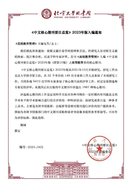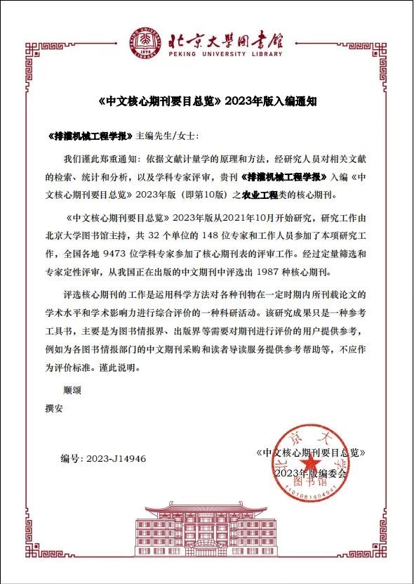 近日,在北京大学图书馆《中文核心期刊要目总览》2023年版(第10版)遴选中,我校主办的《开云足球体育_开云足球(中国)学报(自然科学版)》第8次入选,入编综合性理工农医类核心期刊;《排灌机械工程学报》第7次入选,入编农业工程类核心期刊;《高校教育管理》第4次入选,入编高等教育类核心期刊。
