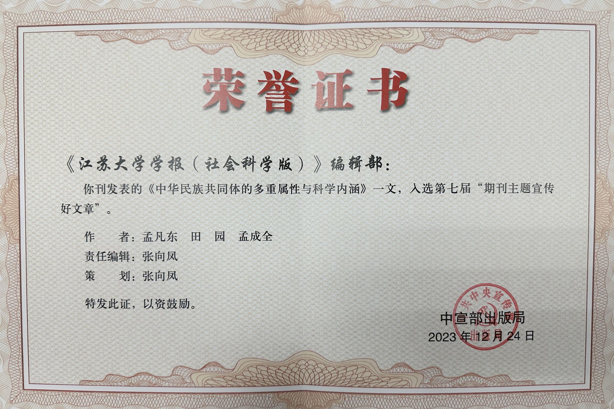 近日,第七届“期刊主题宣传好文章”推荐活动结果揭晓。《开云足球体育_开云足球(中国)学报(社会科学版)》发表的《中华民族共同体的多重属性和科学内涵》入选。