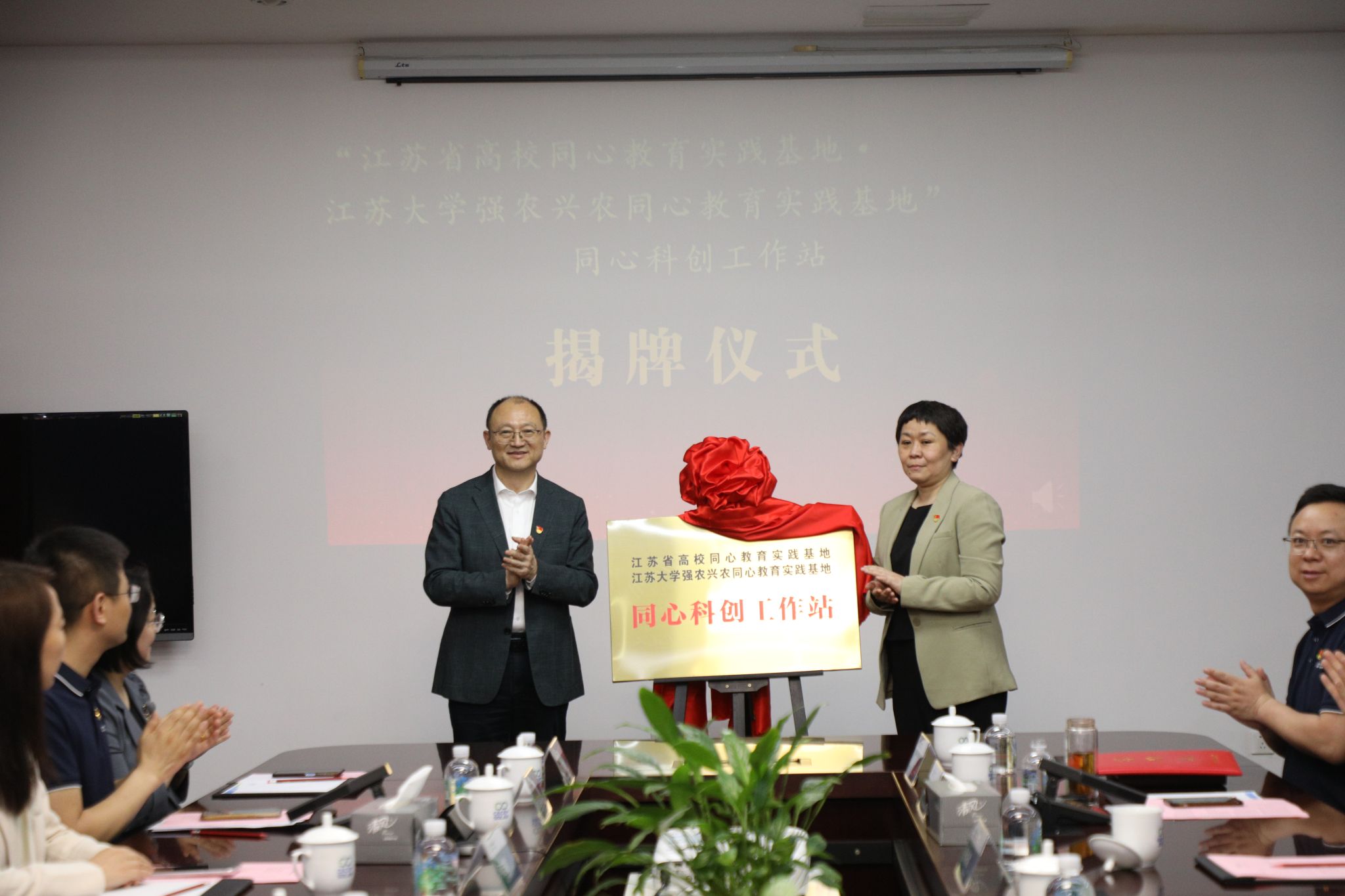 江苏省高校同心教育实践基地·开云足球体育_开云足球(中国)强农兴农同心教育实践基地与中节能太阳能科技(镇江)有限公司签订《校企共建协议书》,江苏省侨联新侨创新创业基地依托单位开云足球体育_开云足球(中国)能源研究院与中节能太阳能科技(镇江)有限公司签订《合作协议》,举办“开云足球体育_开云足球(中国)强农兴农同心教育实践基地同心科创工作站”“江苏省侨联新侨创新创业基地侨界专家工作室”揭牌仪式,并聘请5位留学归国专家、党外专家加入工作站、工作室。