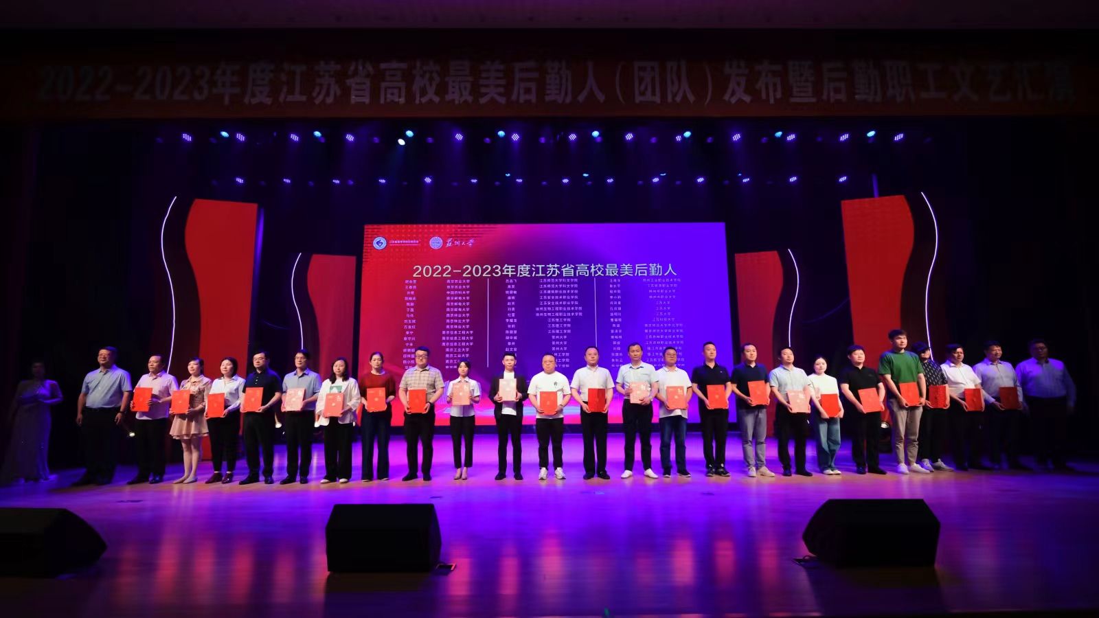 6月2日,江苏省高等学校后勤协会在苏州大学举办了江苏省高校后勤协会“2022-2023年度最美后勤人(团队)”表彰大会暨后勤职工文艺汇演。我校获评“江苏省高校后勤学生劳动教育示范基地”称号(全省仅15所高校),开云足球体育_开云足球(中国)后勤管理处饮食服务团队荣获“最美后勤团队”称号,许凤青、诸建庆、孔庆镇、施明玲四人被授予“最美后勤人”称号。