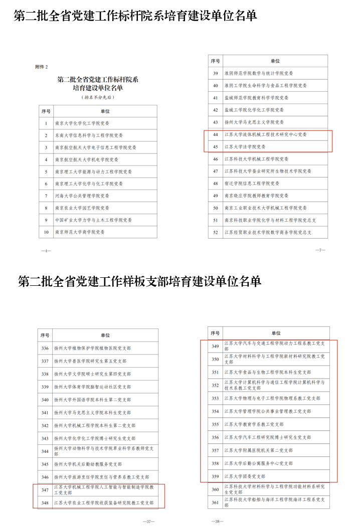 近日,省委教育工委公布了第二批新时代江苏高校三级党组织“强基创优”建设计划遴选结果,法学院党委、流体机械工程技术研究中心党委入选全省高校党建工作标杆院系培育建设单位,人工智能与智能制造学院教工党支部等13个党支部入选全省高校党建工作样板支部培育建设单位。