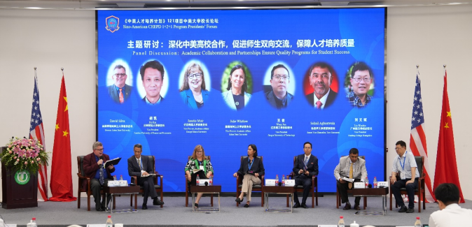主题研讨环节由塞勒姆州立大学副校长大卫·席尔瓦和兰州财经大学副校长胡凯主持。乔治梅森大学副教务长珍妮特·穆尔、塞勒姆州立大学副教务长朱莉·惠特洛、江苏理工学院副校长王俊,特洛伊大学资深副校长索黑尔·安格勃特瓦拉、广州南方学院副校长刘文斌等研讨嘉宾围绕建立121项目的质量标准及评价体系、中美学生双向交流实践及其价值、国际教育对学生成就的影响、中美院校合作伙伴关系的互信和可持续性、新阶段用新技术加强和扩大合作伙伴关系以及丰富内涵和创造更加多元的合作模式等议题进行了热烈的讨论。研讨嘉宾一致认为,121项目平台具有高度价值,增进了中美之间的交流和互信,促使中美双方加深了解、发展友谊,共同培养全球合格公民。