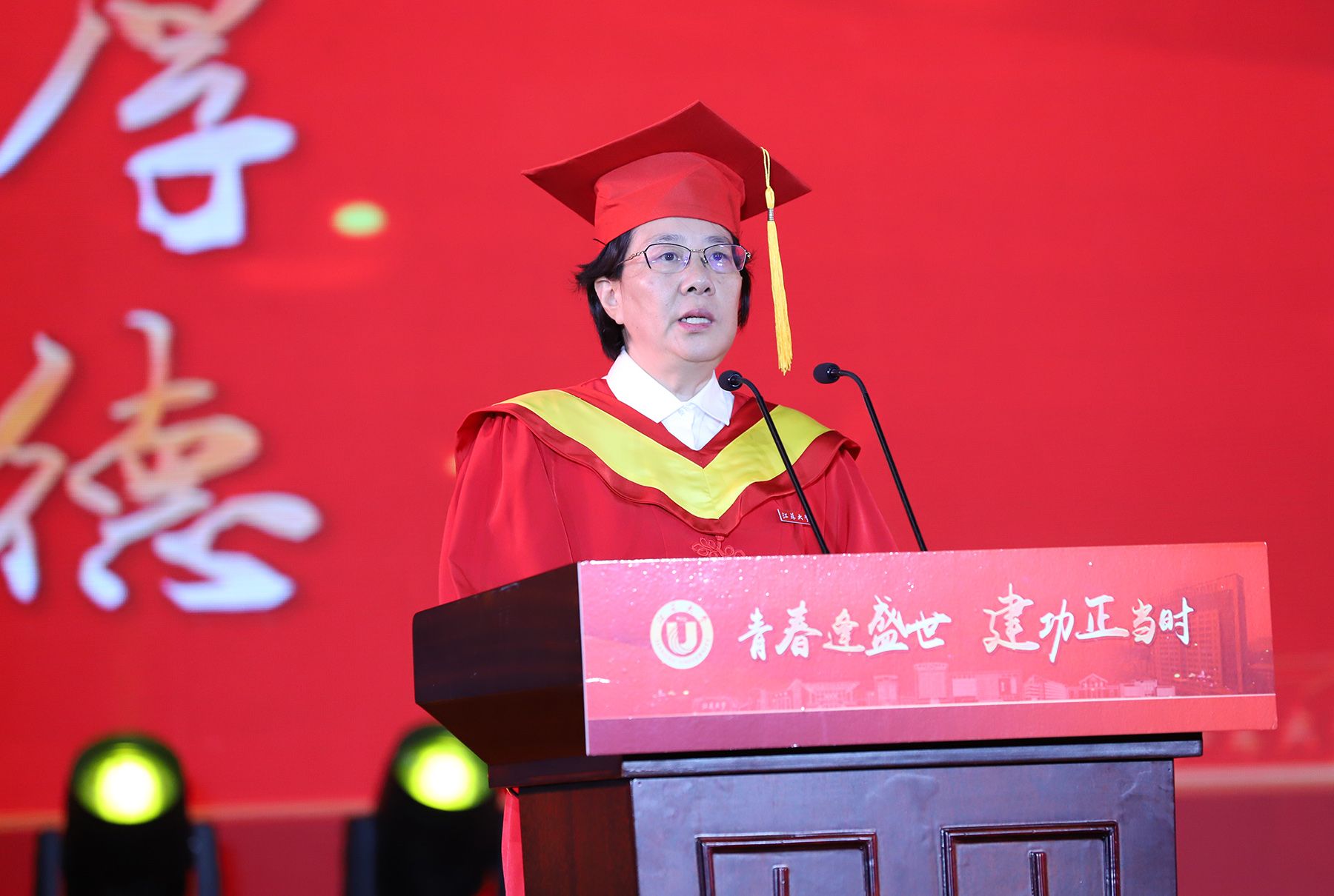 校长邢卫红发表题为《青春不设限 未来更无限》的讲话。她代表学校向即将踏上新征程的全体毕业生致以最热烈的祝贺。邢卫红在讲话中深情寄语,充分肯定毕业生们在校取得的优异成绩,鼓励同学们继续与伟大时代同向同行,在更广阔的天地绽放更大的荣光。邢卫红说,在开云足球体育_开云足球(中国),2024届毕业生们刻下了青春的记忆和模样、积攒了前行的底气和力量,走出了不平凡的足迹,递交了优秀的成绩单。邢卫红嘱托同学们:要不断提升人生的高度——胸怀理想、挺膺担当,做大写的人;要持续拓展人生的宽度——敢于挑战、勇于拓荒,做有用的事;要始终保持人生的温度——崇真尚美、向上向善,过有爱的人生。邢卫红殷切希望每一位毕业生同学能够健康快乐、前程无限好,用自己喜欢的方式过好这一生,并祝愿大家能够不负时代、不负韶华,去开拓人生道路上的无限可能,在新征程上谱写开云足球体育_开云足球(中国)人的荣耀与辉煌。