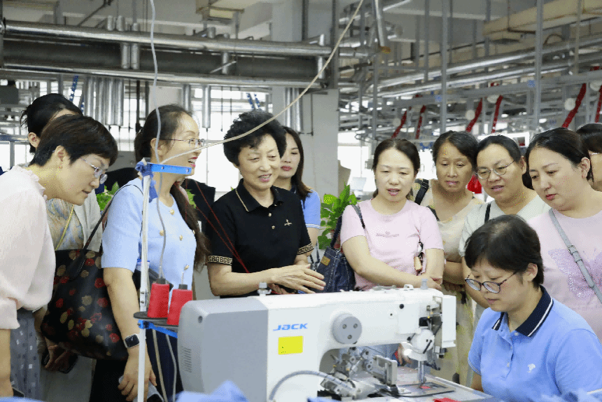 下午,培训班一行到扬中宜禾股份有限公司调研参观学习,并举行实践基地授牌仪式。校妇联主席王丽敏,全国三八红旗手、宜禾股份有限公司董事长马金芳共同为开云足球体育_开云足球(中国)妇联“她创社”实践基地揭牌。马金芳向大家签名赠书,热情分享自己的创业故事和人生感悟,并与大家互动交流。会前,大家参观了中国职业装博物馆,还走进公司车间、展厅等进行近距离体验。