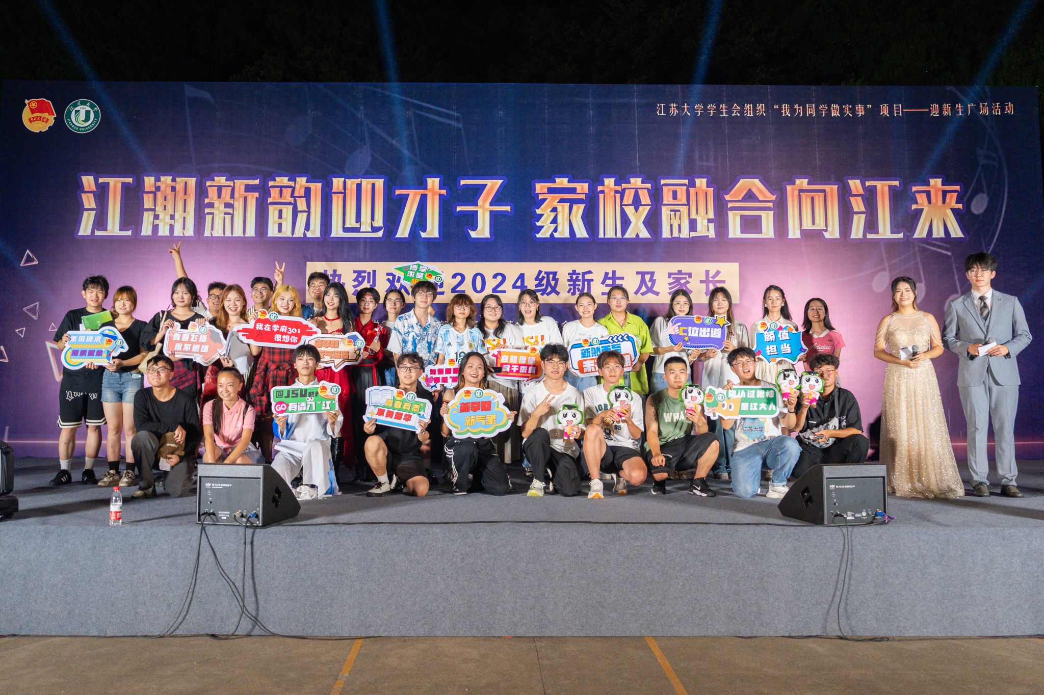 此外,学校还举办入学讲座、家长课堂及一系列新颖的迎新活动,新生及家长积极参与其中,共同体验充满活力的喊麦互动,凝聚家庭与学校的教育合力。志愿者们精神饱满,冒着高温,各司其职,积极开展新生接站、引导讲解、搬运行李等服务工作,成为校园一道亮丽的风景线。学校在西山灯光篮球场开展了“江潮新韵迎才子,家校融合向未来——迎新生广场活动暨开云足球体育_开云足球(中国)星期六达人秀”,学生组织现场为同学做实事,节目表演精彩纷呈,新生与家长共同参与表演,为迎新活动增添了别样的文化体验和氛围。