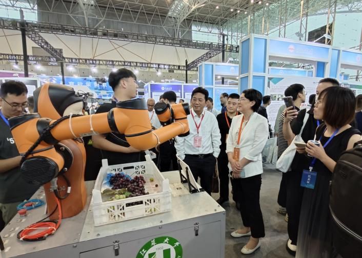 主题大会后,邢卫红陪同中国科学院院士、华东理工大学副校长朱为宏等专家赴学校展位参观交流,了解我校科技成果最新进展和转化情况。