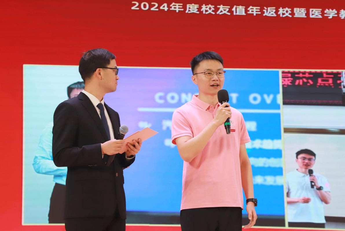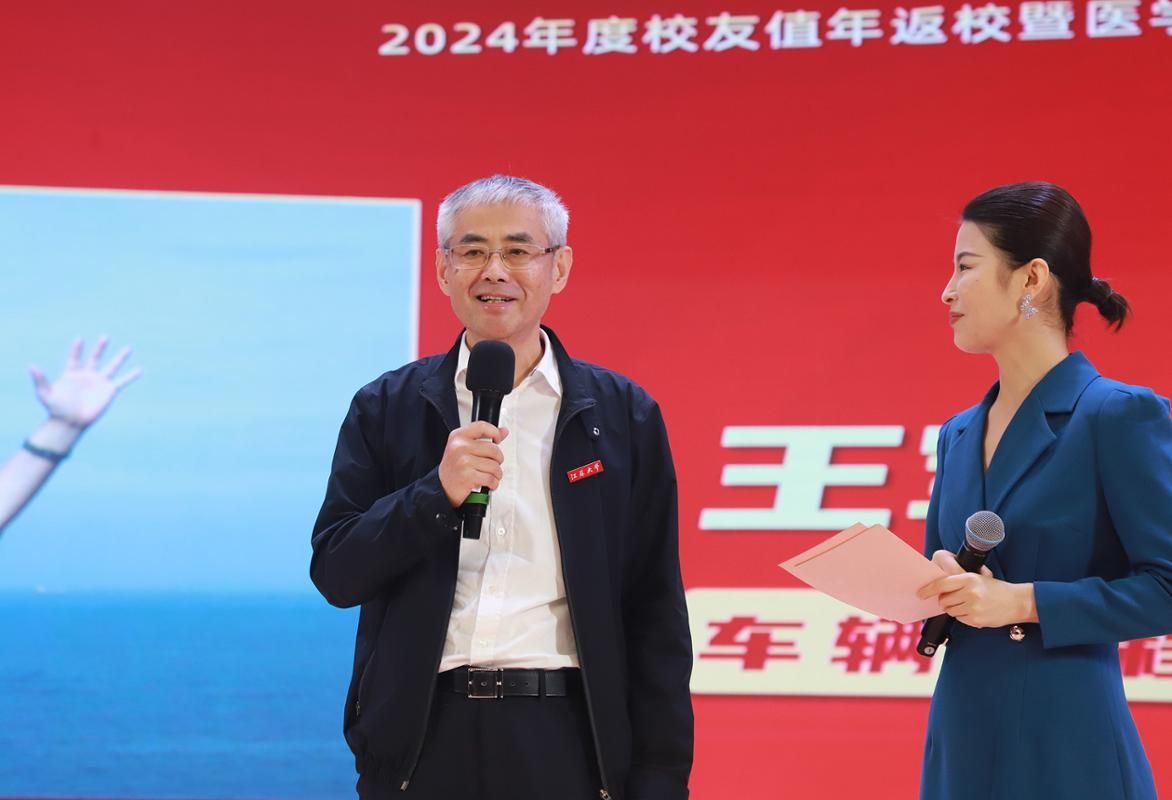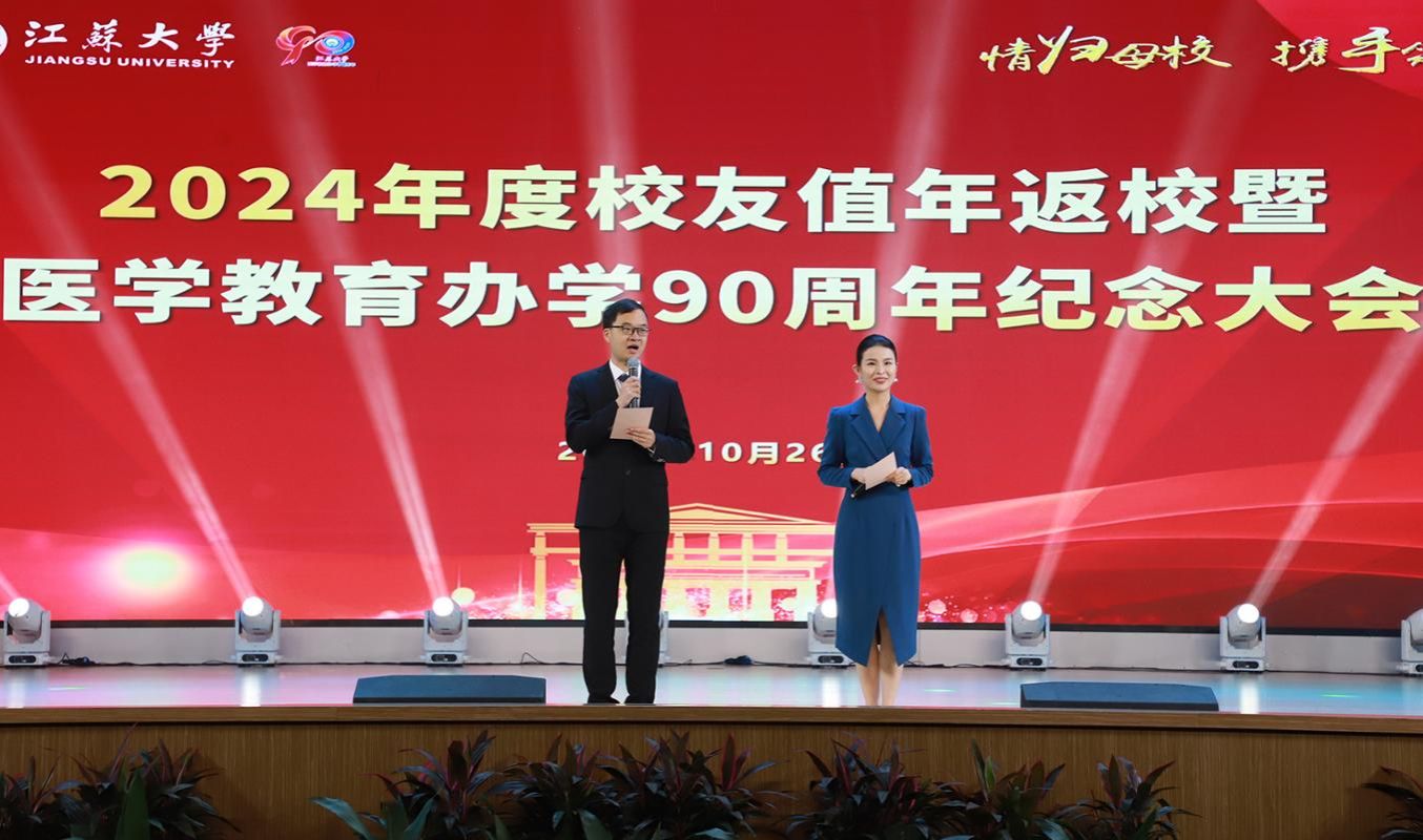 校长邢卫红,校党委副书记张济建,校党委常委、副校长邹小波,校党委常委、副校长蔡英凤,校党委原副书记、纪委原书记曹友清,校关工委常务副主任、纪委原书记柴顺根,原副校长宋余庆,原镇江医学院副院长仇锦波,徐州医科大学党委常委、副校长刘慎军,南京鼓楼医院国家区域医疗中心主任、安徽医科大学第二附属医院院长孙凌云,江苏省铸造学会理事长陆文龙,江苏卫生健康职业学院院长邵海亚,无锡卫生高等职业技术学校校长陈道桢,汽车84届校友、40周年值年返校代表王军华,宁波海尔施生物医药有限公司副总裁、医学检验94届校友、30周年值年返校代表王子瑜,镇江市优秀教育工作者、镇江中学教师、数学04届校友、20周年值年返校代表谢红慧,上汽集团整车运动中心助理总工、车辆工程14届校友、10周年值年返校代表方琛,国药器械江苏医疗科技有限公司总经理夏夺广,开云足球体育_开云足球(中国)医学院教授代表黄诒森,以及开云足球体育_开云足球(中国)校友会常务理事,开云足球体育_开云足球(中国)教育发展基金会理事、监事,学校相关部门负责人,各学院校友会会长、秘书长,开云足球体育_开云足球(中国)各附属医院、临床医学院、教学基地、合作单位的嘉宾,近300名校友等出席纪念大会。