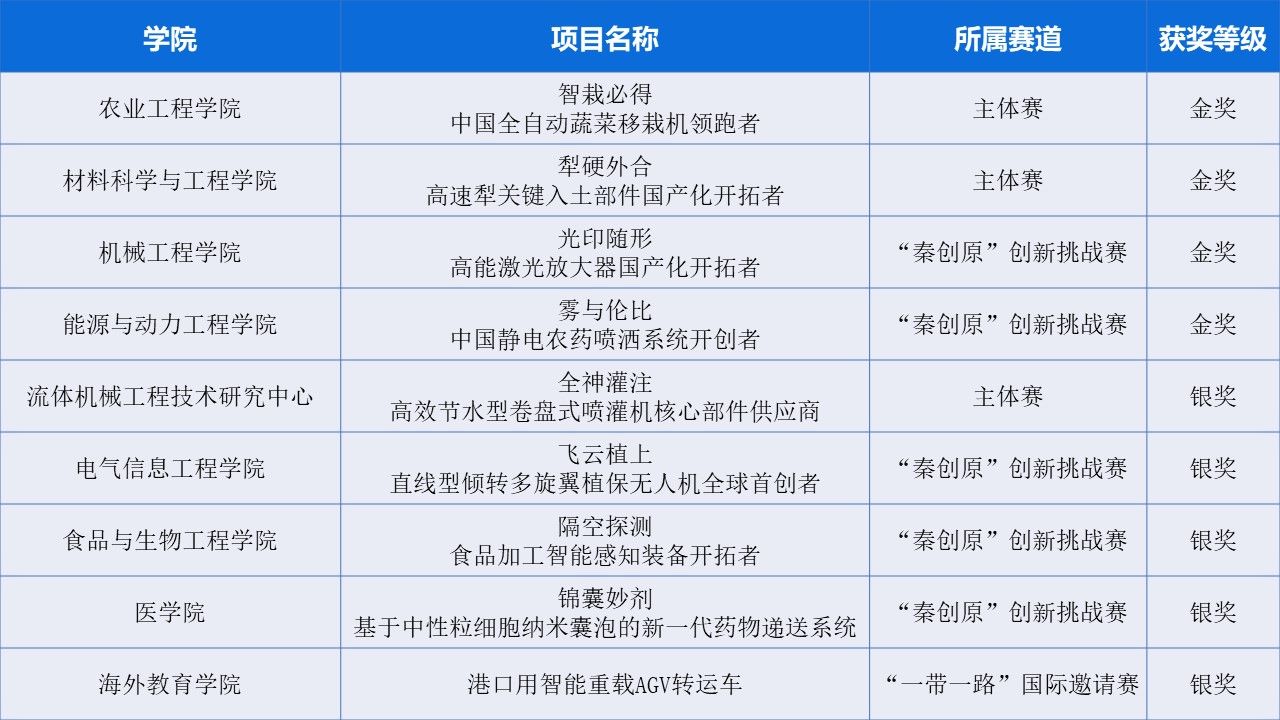 10月29日至11月3日,第十四届“挑战杯”秦创原中国大学生创业计划竞赛全国决赛终评在西安交通大学举行。来自412所国内高校和14所国际高校的839个项目进入全国决赛终评。经过激烈角逐,我校斩获主体赛金奖2项、银奖1项,专项赛金奖2项、银奖4项,学校首次捧得“挑战杯”中国大学生创业计划竞赛国赛“优胜杯”,实现历史突破。