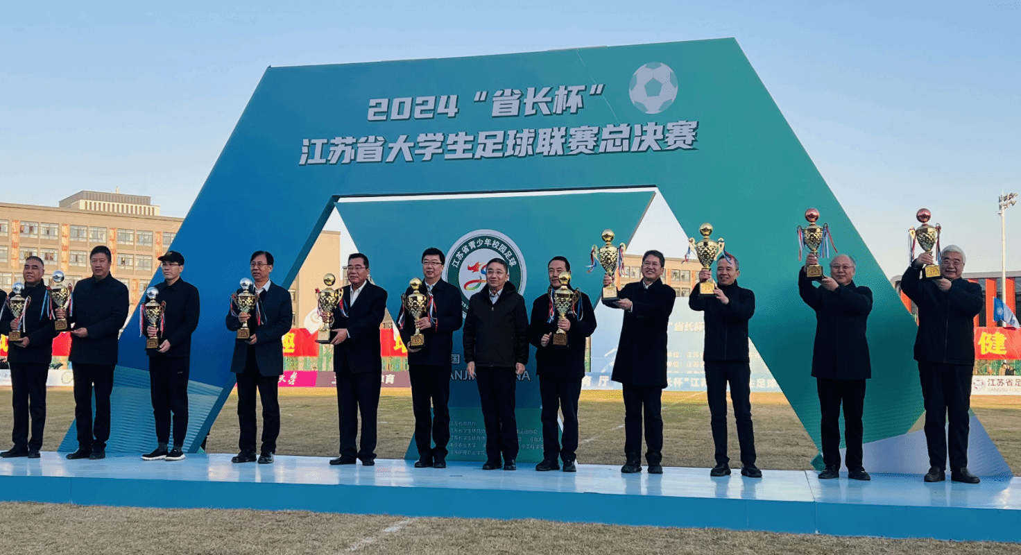 12月8日,2024“省长杯”江苏省大学生足球联赛总决赛暨闭幕式在南京农业大学滨江校区举行,省长许昆林,副省长夏心旻、赵岩出席闭幕式。我校男足蝉联“省长杯”桂冠,省教育厅厅长、党组书记、省委教育工委书记江涌为我校颁发冠军(普通本科男子组)奖杯,校党委常委、副校长邹小波代表学校领奖。