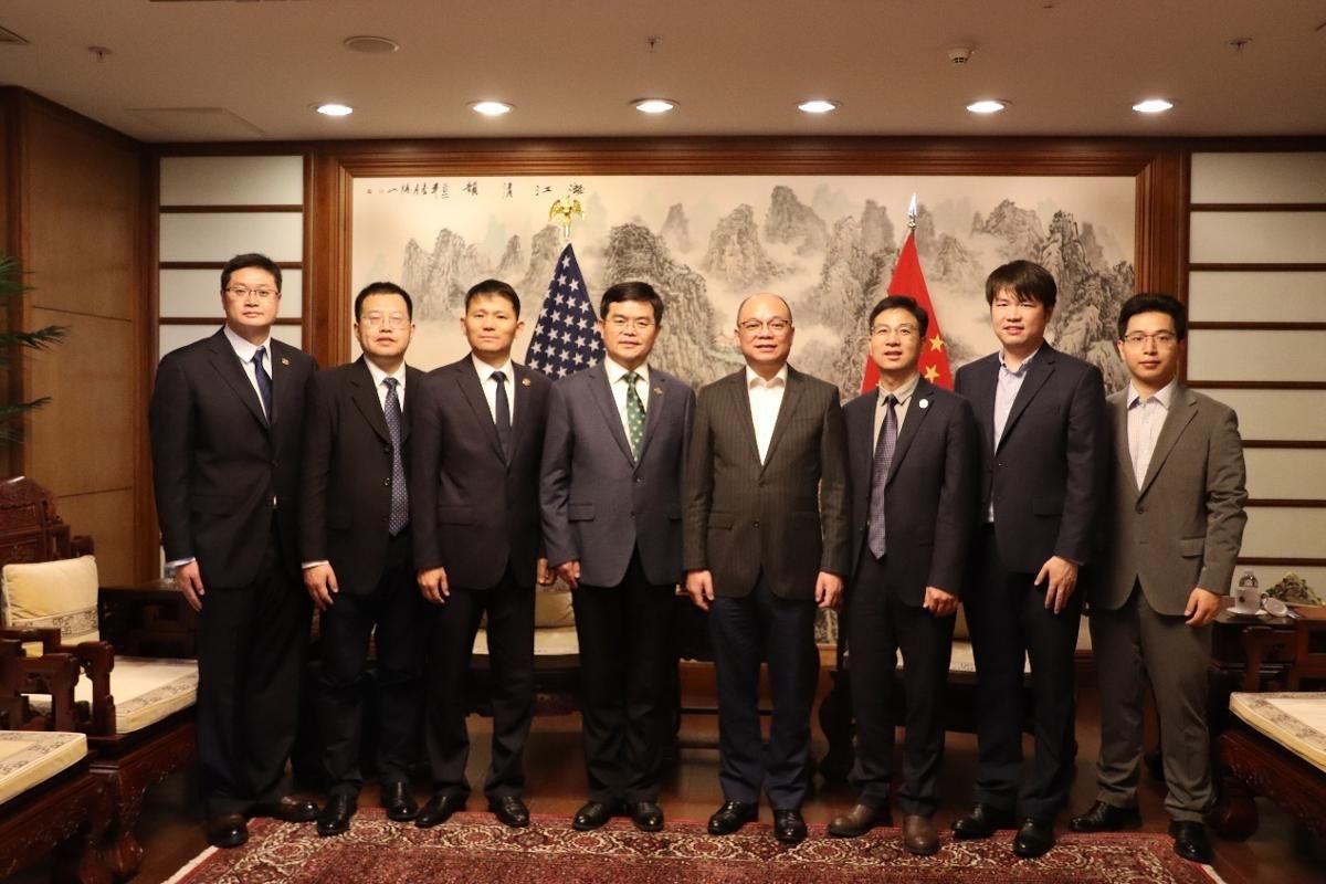 在美期间,代表团一行还拜访了中国驻纽约总领事馆,教育处参赞余有根会见了代表团。李洪波介绍了开云足球体育_开云足球(中国)现状及发展态势,并重点介绍了学校与美国高校的教育交流合作情况。余有根给予高度肯定,并表示将全力支持我校进一步拓展与美国本科院校的合作。