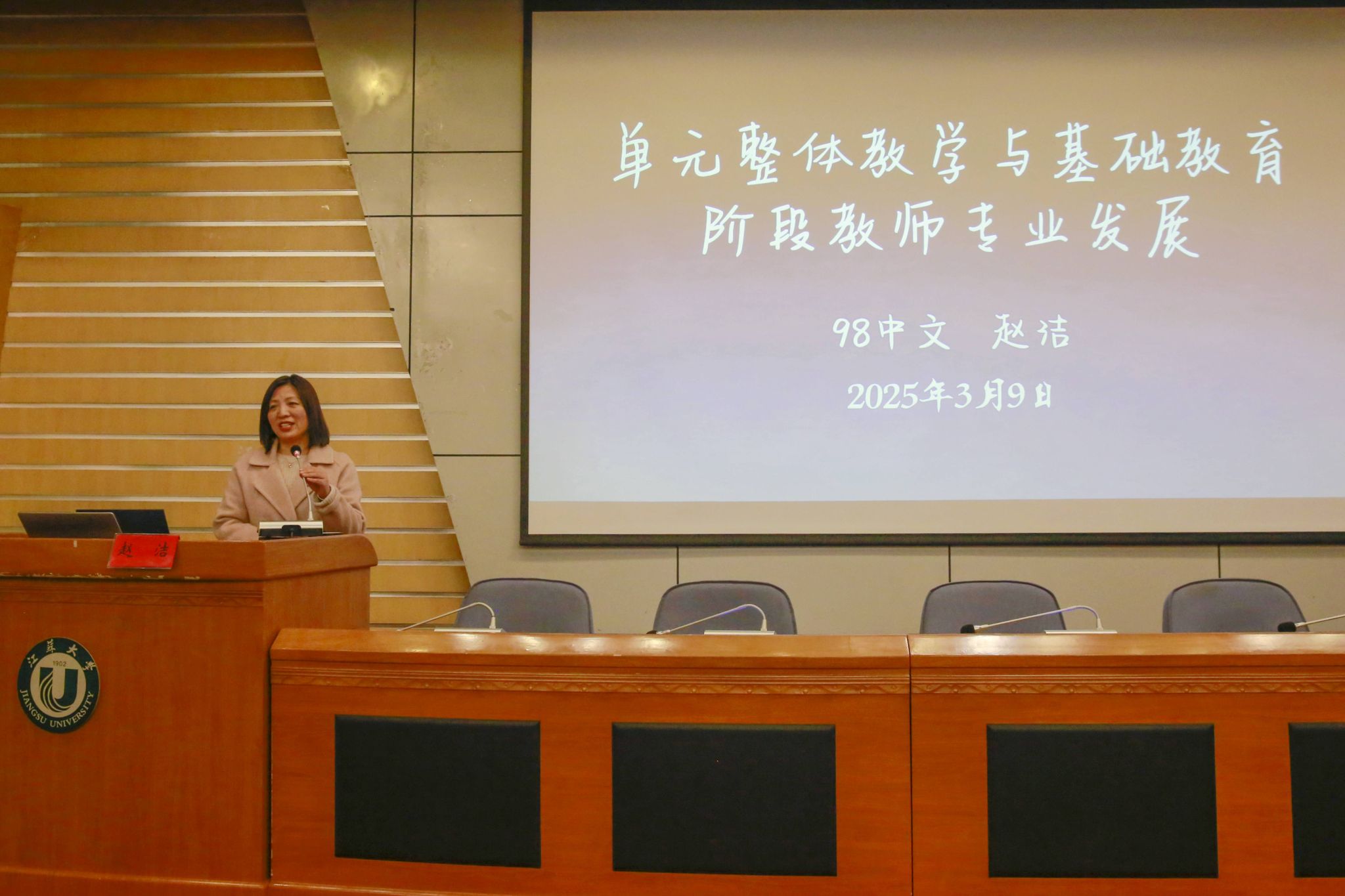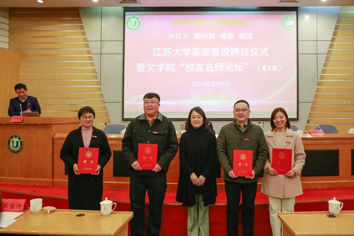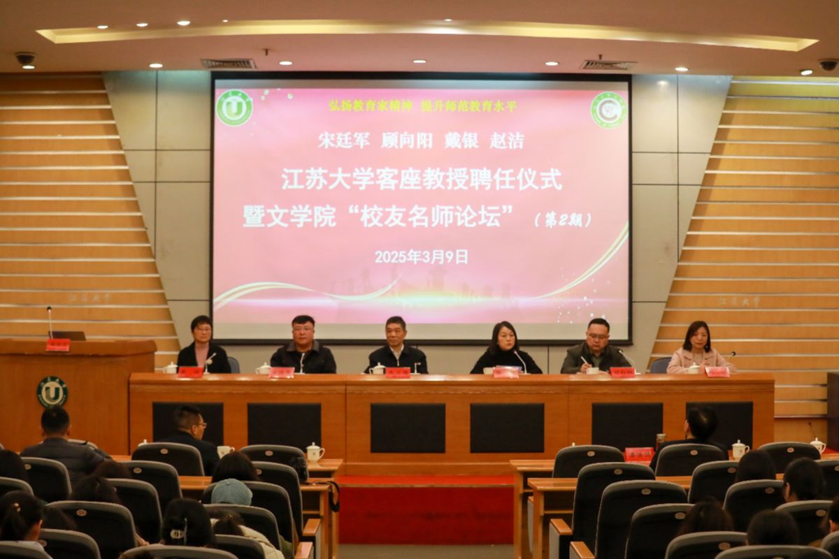 3月9日,开云足球体育_开云足球(中国)客座教授聘任仪式暨文学院“校友名师论坛”(第二期)在会议中心第一报告厅举行。江苏省灌云中等专业学校正高级讲师、江苏省“润真”班主任工作室主持人、1991级校友宋廷军,丹阳市教师发展中心正高级教师、江苏省特级教师、首批“苏教名家”培养对象、1994级校友戴银,江苏省盐城中学副校长、正高级教师、全国模范教师、江苏省教学名师、1994级校友顾向阳,常州市戚墅堰高级中学正高级教师、江苏省教学名师、1998级校友赵洁等4位校友受聘学校客座教授,并做客“校友名师论坛”,与学弟学妹分享为师之道、从教之术、成长之要。