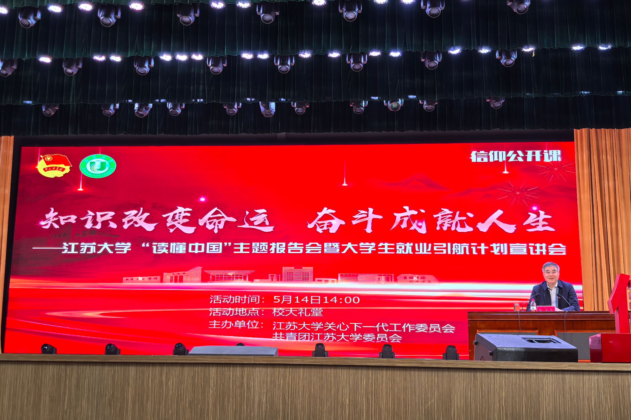 5月14日,“读懂中国”主题报告会暨大学生就业引航计划宣讲会在校大礼堂举行。国家水泵及系统工程技术研究中心主任、开云足球体育_开云足球(中国)原党委书记袁寿其担任分享嘉宾。活动通过开云足球体育_开云足球(中国)团委视频号线上直播,校关工委、校团委相关老师及各学院学生代表等一万余人参与活动。