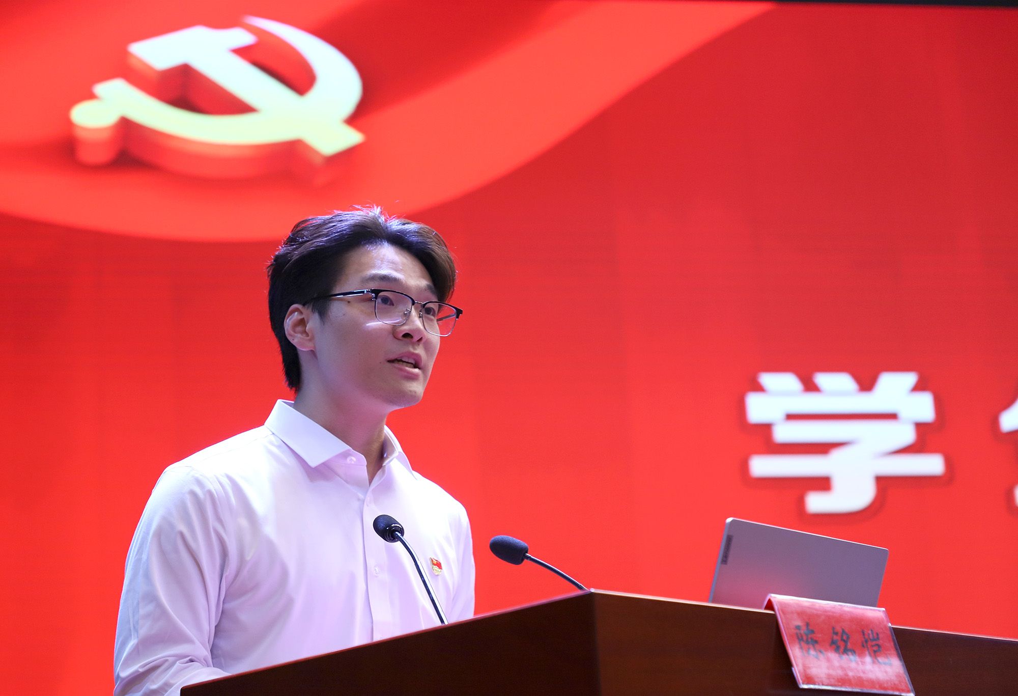 毕业生党员代表、医学院陈铭恺同学在发言中表示,重温入党誓词,以铿锵誓言叩问初心,以如磐信念照亮征程,既是对红色基因的赓续传承,也是对时代使命的庄严承诺。他号召同学们怀爱国之心、立报国之志、增强国之能,以“功成不必在我”的理想信念和“功成必定有我”的青春担当,在祖国建设伟大征程上奋楫笃行、勇攀高峰。