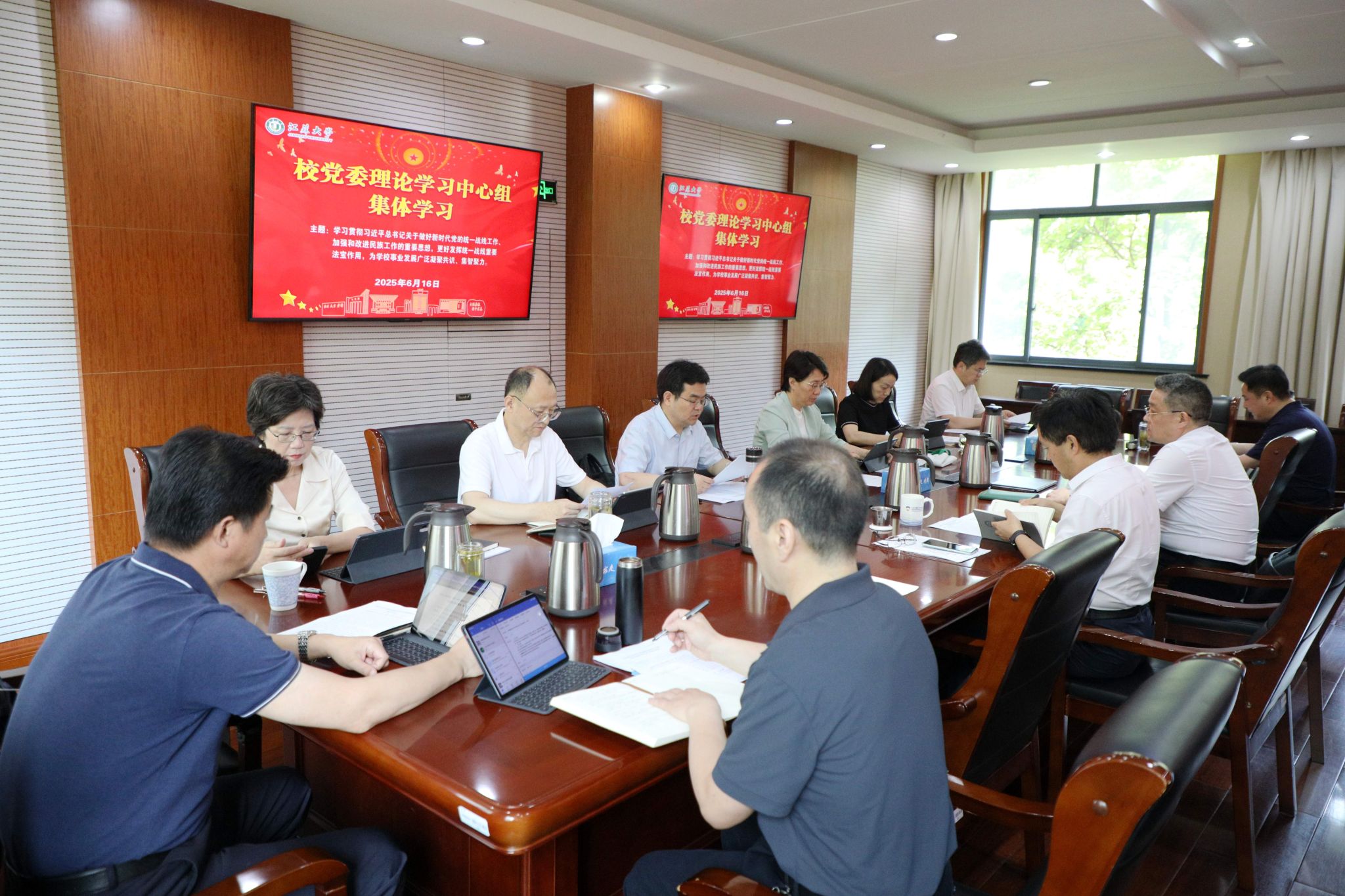 6月16日,校党委理论学习中心组在行政一号楼201会议室围绕习近平总书记关于做好新时代党的统一战线工作、加强和改进民族工作的重要思想主题开展集体学习。全体校党委理论学习中心组成员参加学习,集体学习由校党委书记李洪波主持。