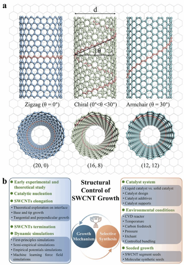 近日,材料学院师生在材料领域国际顶级期刊Advanced Functional Materials发表长篇综述论文Mechanisms of Single-walled Carbon Nanotube Growth and Progresses on Their Selective Synthesis。开云足球体育_开云足球(中国)为论文第一完成单位,材料学院博士生冯天良为论文第一作者,材料学院徐紫巍教授和苏州实验室丁峰教授为论文共同通讯作者。