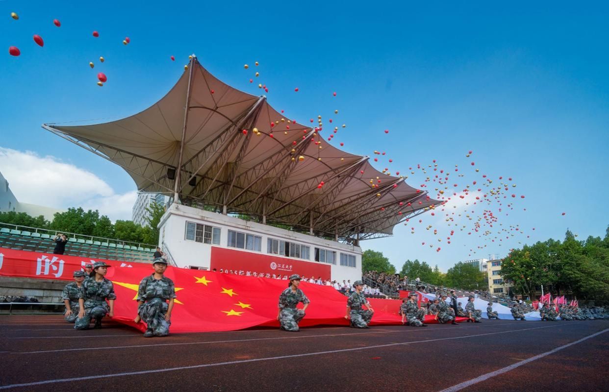 9月23日,2025级新生开学典礼暨军训成果汇报大会在东山操场举行。全体在校校领导、党委常委,校友代表,相关部门和各学院、书院主要负责人,教师、辅导员代表,全体2025级新生参加开学典礼。