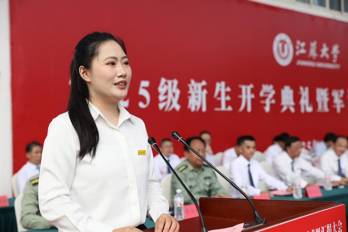 教师代表、江苏特聘教授、国家优秀青年科学基金获得者、能源研究院博士生导师姜志锋教授,84级校友代表、合肥友高物联网标识设备有限公司董事长陈文正,老生代表、校研究生会主席团成员、管理学院物流工程与管理专业硕士研究生陈怡冰,新生代表、机械工程学院仪器科学与技术专业博士研究生陈赛赛,新生代表、汽车与交通工程学院车辆工程专业本科生王晨旸,新生代表、财经学院国际经济与贸易专业留学生柯莉丝在典礼上分别发言。