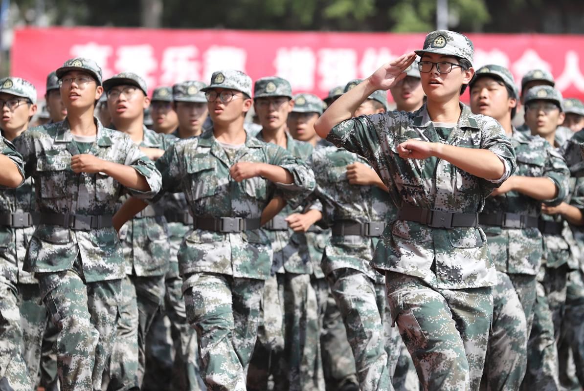 开学典礼后举行了2025级本科生军训成果汇报大会。