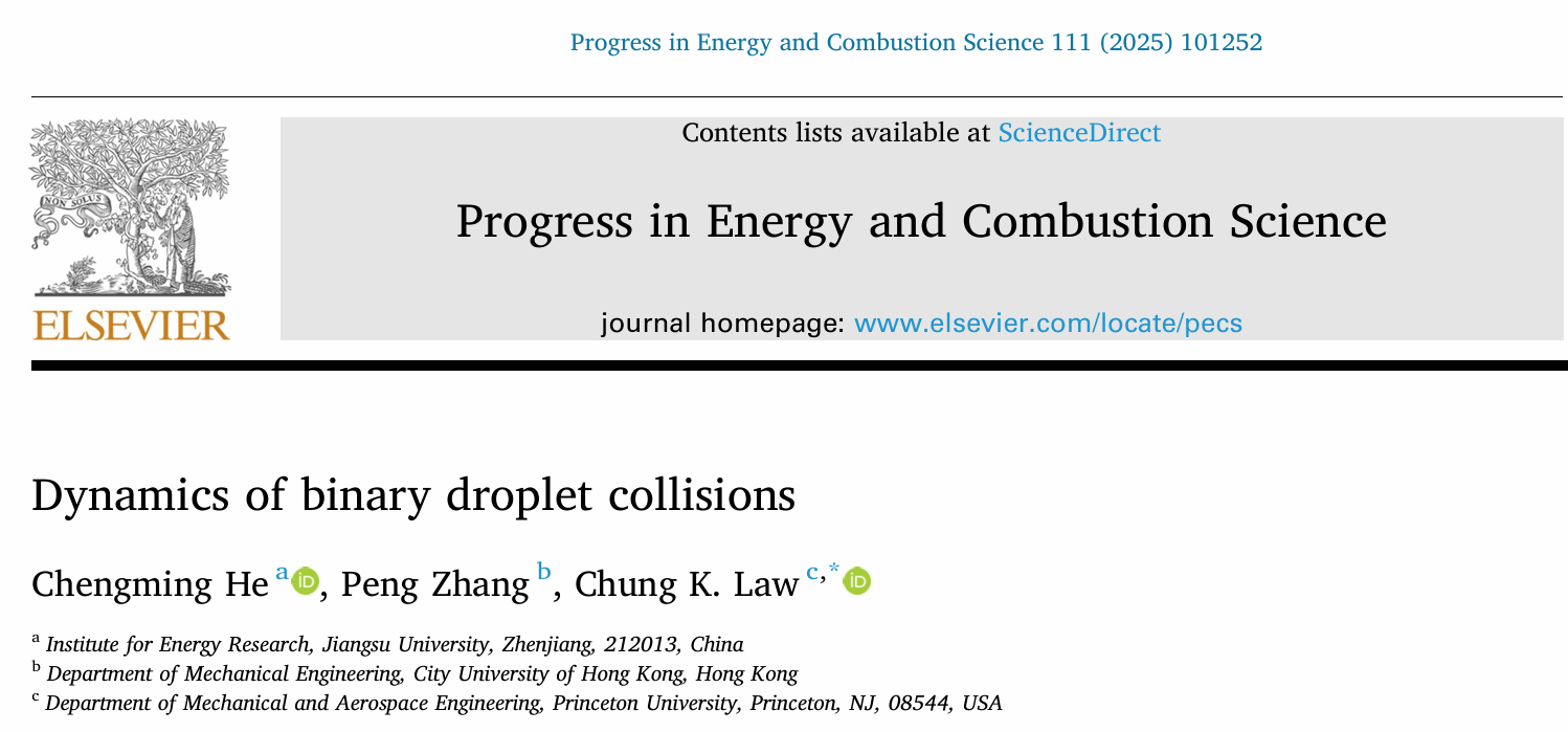 近日,能源研究院金山青年特聘教授何成明联合香港城市大学副教授张鹏及美国国家工程院院士、普林斯顿大学教授Chung K. Law在能源领域国际顶级期刊Progress in Energy and Combustion Science上发表题为Dynamics of binary droplet collisions(《二元液滴碰撞动力学》)的综述论文。开云足球体育_开云足球(中国)为第一完成单位,也是学校首次在该能源领域顶刊上发表文章。