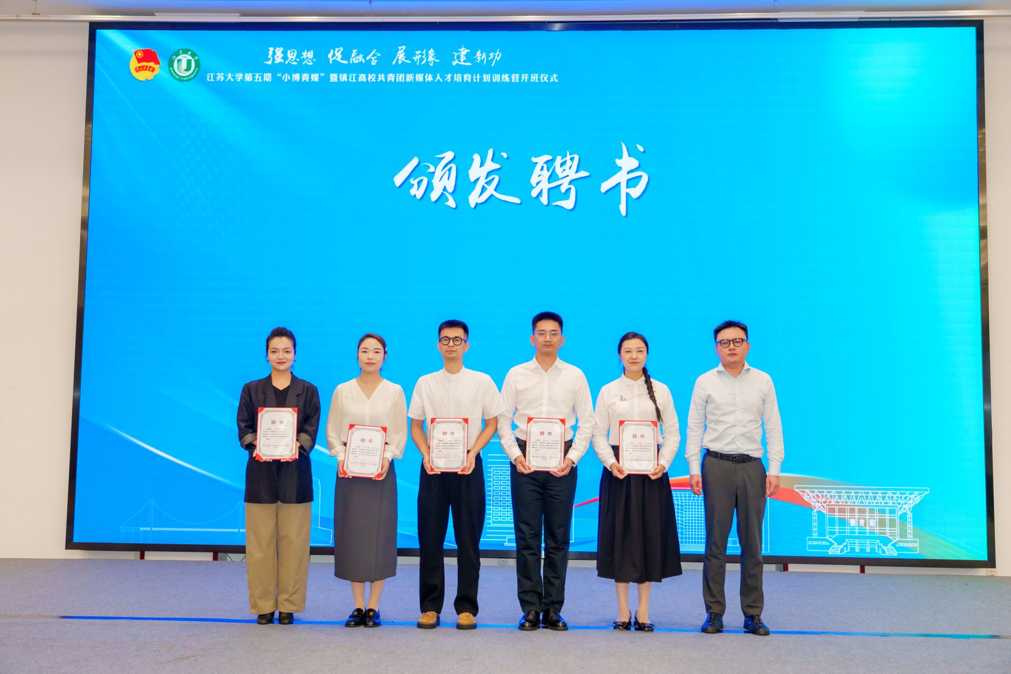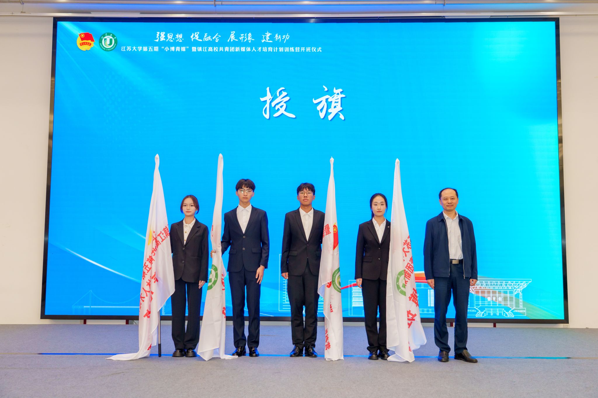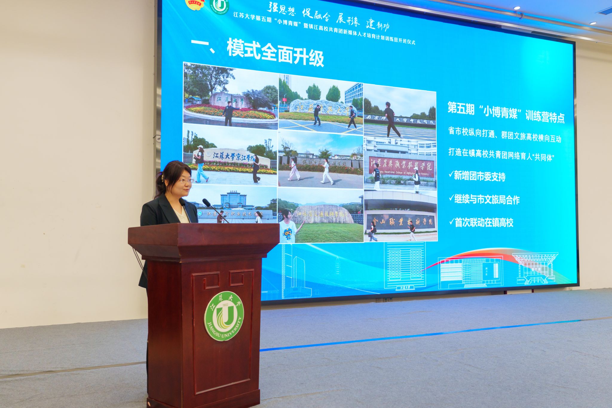 10月18日,由共青团开云足球体育_开云足球(中国)委员会、共青团镇江市委员会、镇江市文化广电和旅游局联合主办的开云足球体育_开云足球(中国)第五期“小博青媒”暨镇江高校共青团新媒体人才培育计划训练营在学校青教公寓多功能厅举行。共青团江苏省委新媒体发展中心主任孙洪洋,共青团镇江市委书记杜剑,镇江市文化广电和旅游局党委委员、副局长曹玮,校团委书记张永强,共青团镇江市委副书记徐加伦等出席活动,训练营班主任、朋辈指导员及9所在镇高校师生代表约150人参加活动。会议由校团委副书记刘丹主持。