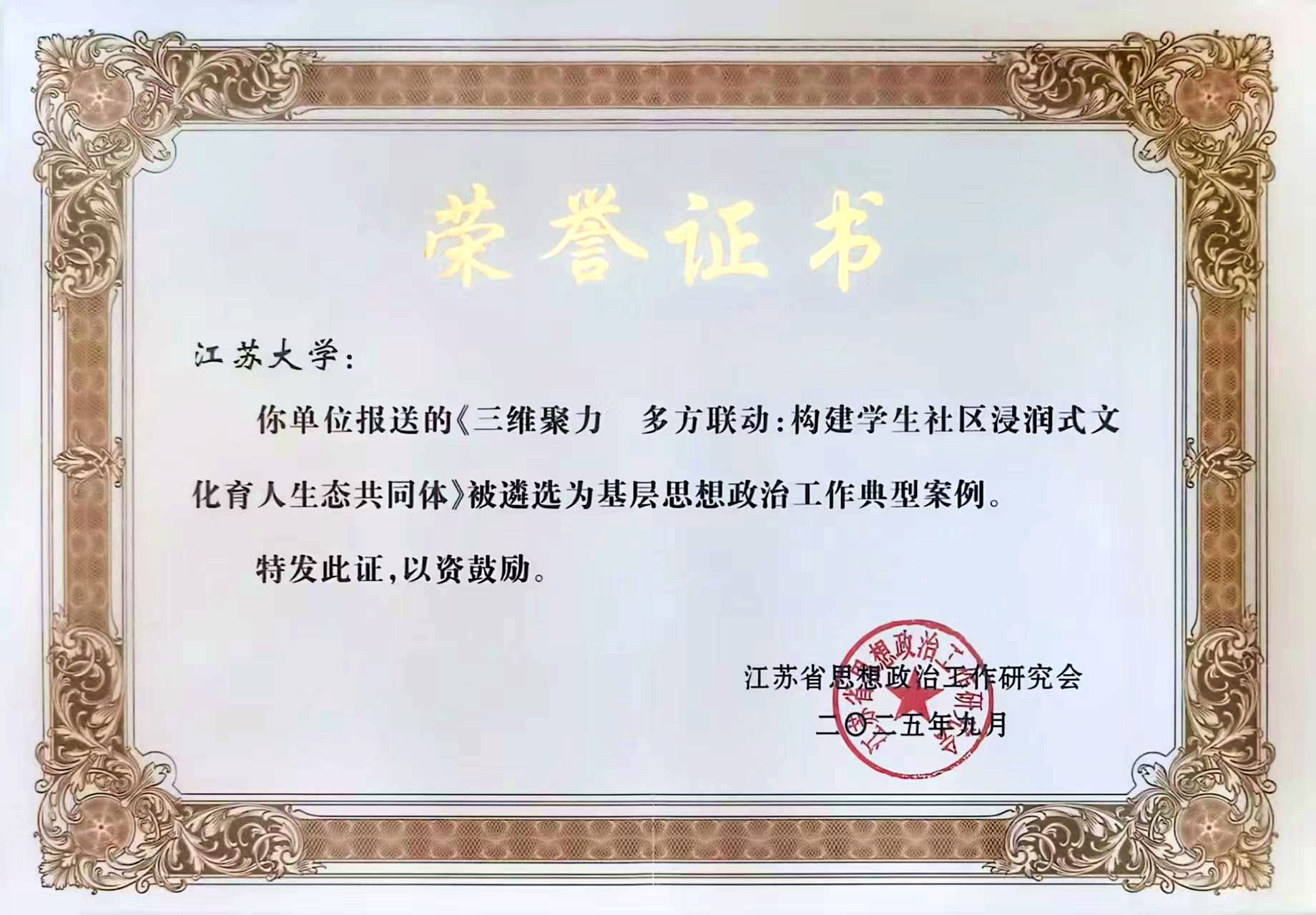 近日,江苏省思想政治工作研究会印发了《关于印发〈基层思想政治工作典型案例名单(2025年)〉的通知》(苏政研﹝2025﹞5号),我校推荐的《三维聚力 多方联动:构建学生社区浸润式文化育人生态共同体》案例成功入选。