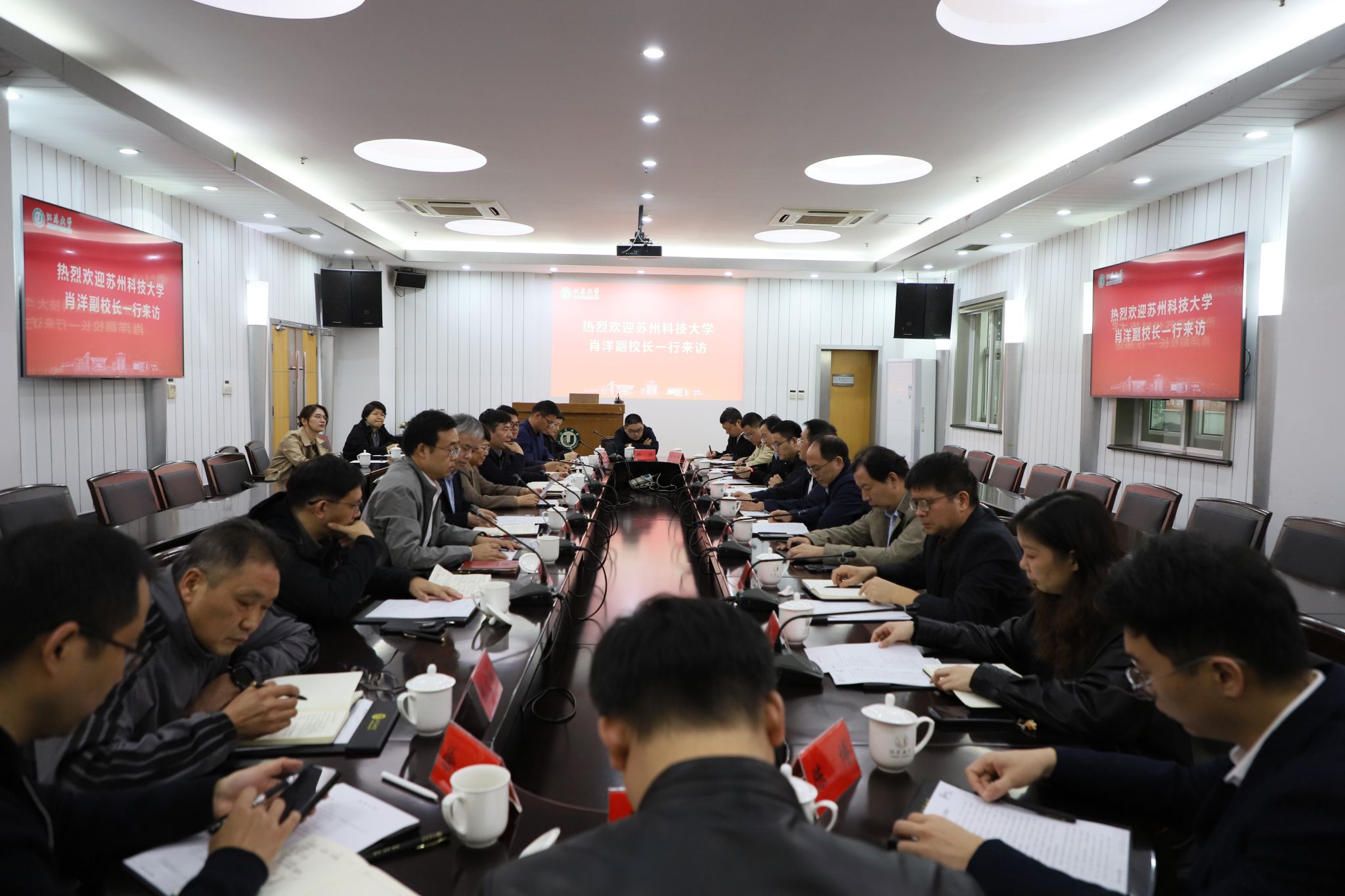 11月6日,苏州科技大学副校长肖洋一行来校调研,校长邢卫红接待了来访一行。