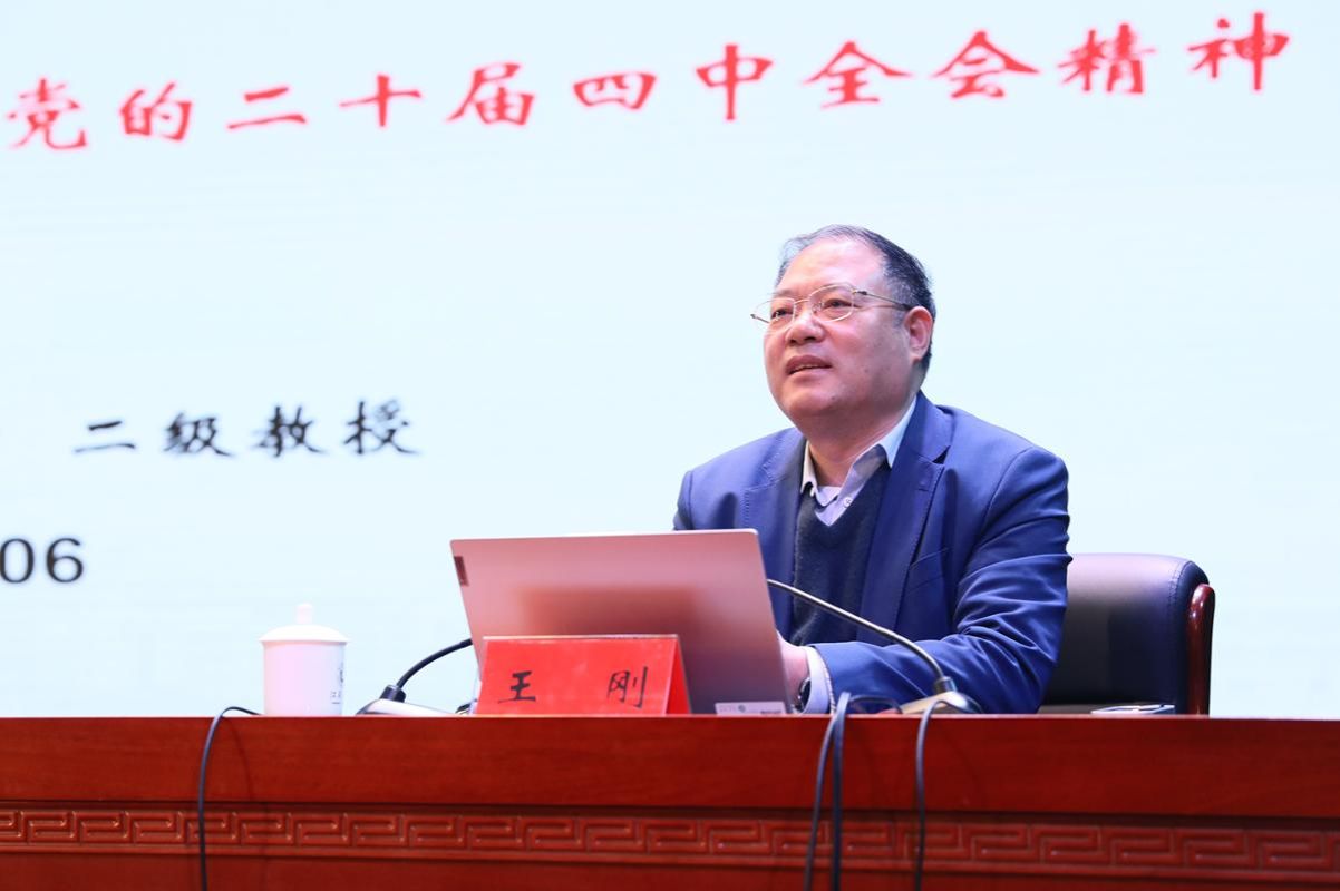 报告会上,王刚深入解读了在“十四五”规划即将收官、“十五五”规划谋篇布局的关键节点召开的党的二十届四中全会的重要意义。他围绕“十五五”时期在基本实现社会主义现代化进程中的重要地位,确保基本实现社会主义现代化取得决定性进展,“十五五”时期经济社会发展的战略任务和重大举措,坚持和加强党的全面领导、凝聚起推进中国式现代化的磅礴力量以及学习贯彻党的二十届四中全会精神的要求等方面为师生作了一场高质量的宣讲报告。