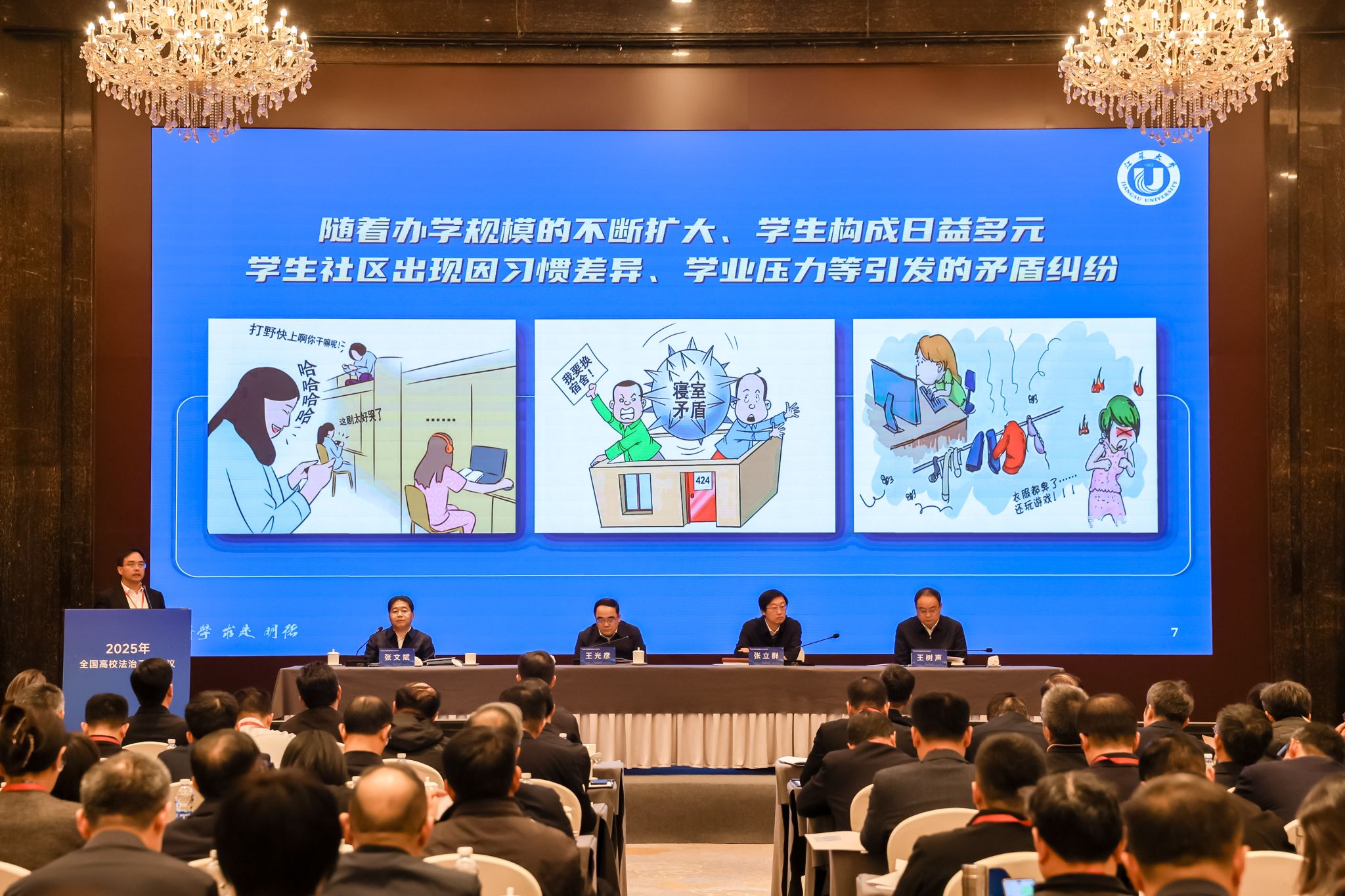 会上,王景全代表学校作题为《“小事不出楼,大事不出校,矛盾不上交”——开云足球体育_开云足球(中国)学生社区矛盾纠纷调解新范式》的发言,围绕学校立足学习贯彻习近平法治思想、深入践行新时代“枫桥经验”,从加强党建引领、发挥法学专业优势、依托学生主体、构建一站式响应机制及设立定期值班五方面,介绍学校矛盾纠纷调解、师生权益保护工作的探索实践及工作成效。