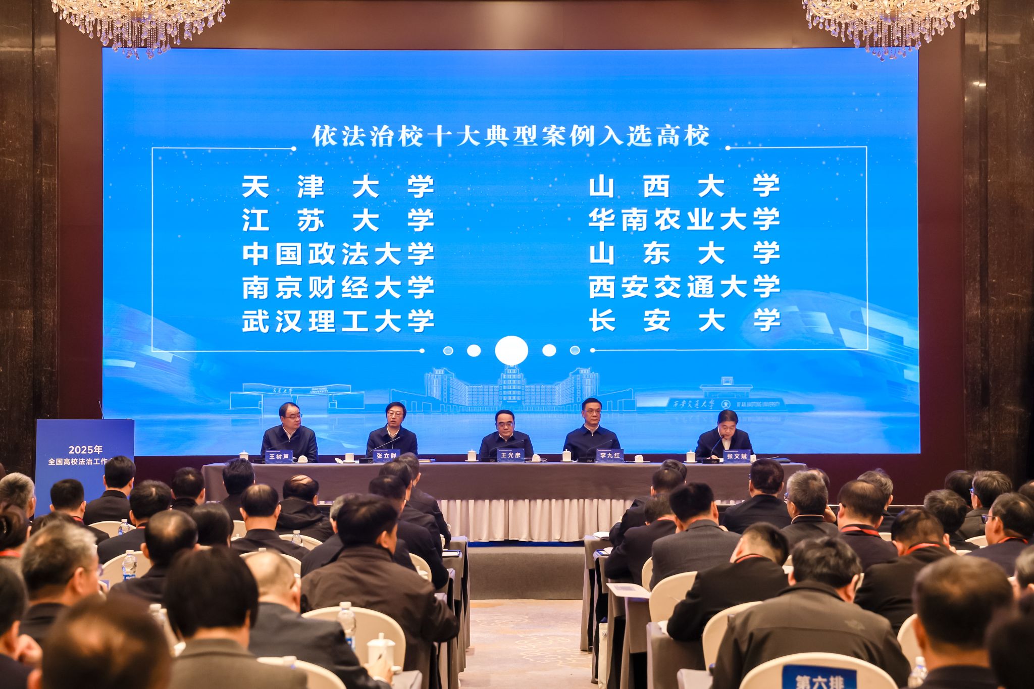 近日,2025年全国高校法治工作会议在西安召开。教育部党组成员、副部长王光彦出席会议并讲话。学校法治工作案例入选全国高校依法治校十大典型案例,党委常委、副校长王景全代表学校作典型交流发言。