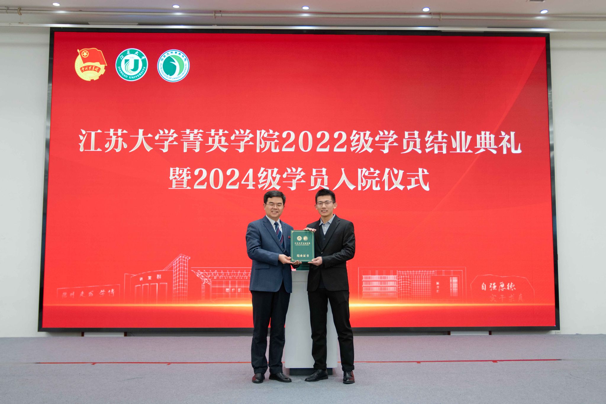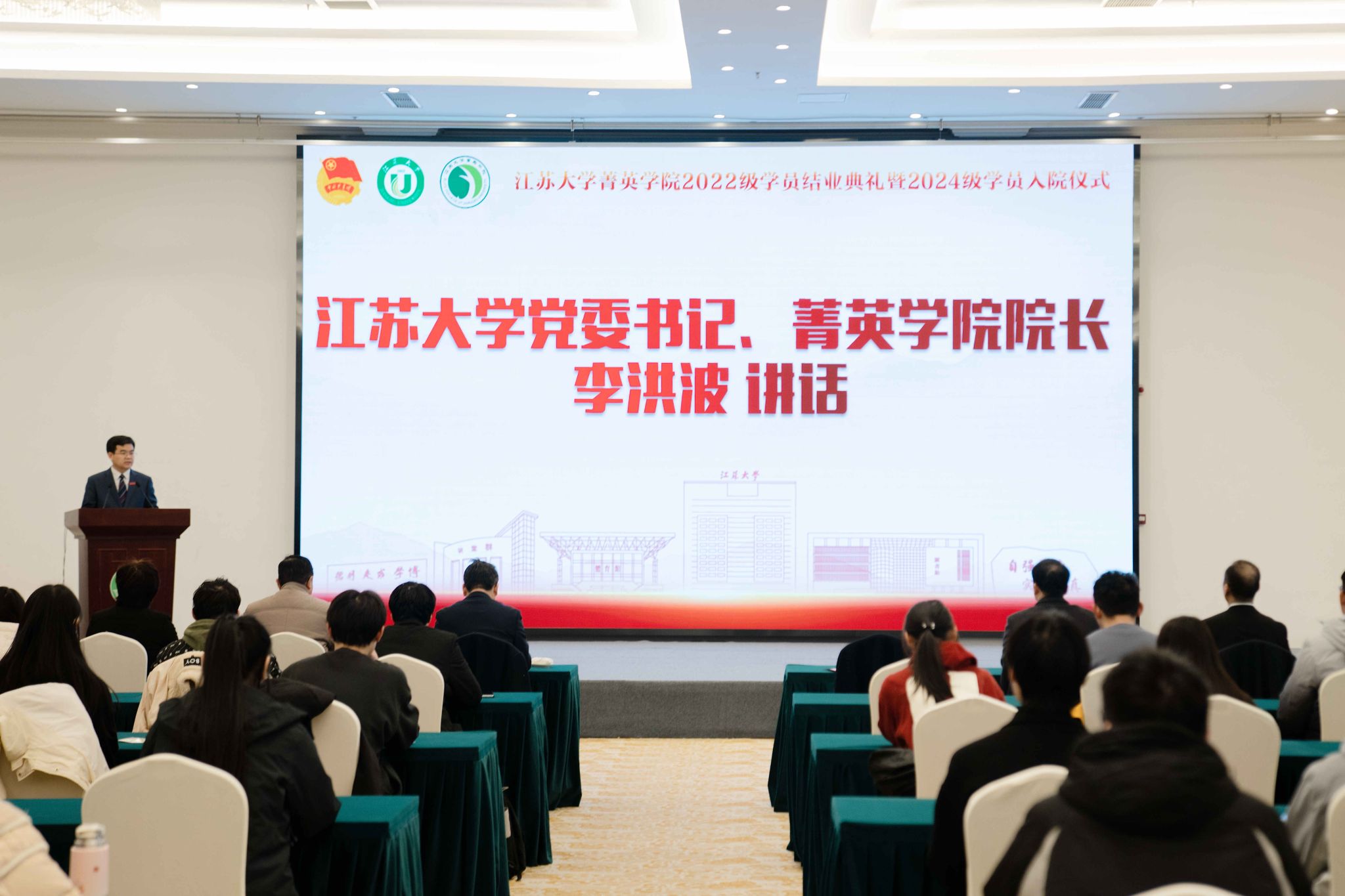 12月14日,菁英学院2022级学员结业典礼暨2024级学员入院仪式在青教公寓三江厅举行。校党委书记、菁英学院院长李洪波,党委常委、副校长、菁英学院副院长邹小波及任旭东,校关工委常务副主任柴顺根,党委常委、党委组织部部长杨敬江,党委离退休工作部部长林新荣,科学技术处处长鲁金忠,研究生院常务副院长朱孝勇,国际合作交流处处长崔勇出席典礼。菁英学院科创导师代表、2022级和2024级学员参加典礼。典礼由校团委书记张永强主持。
