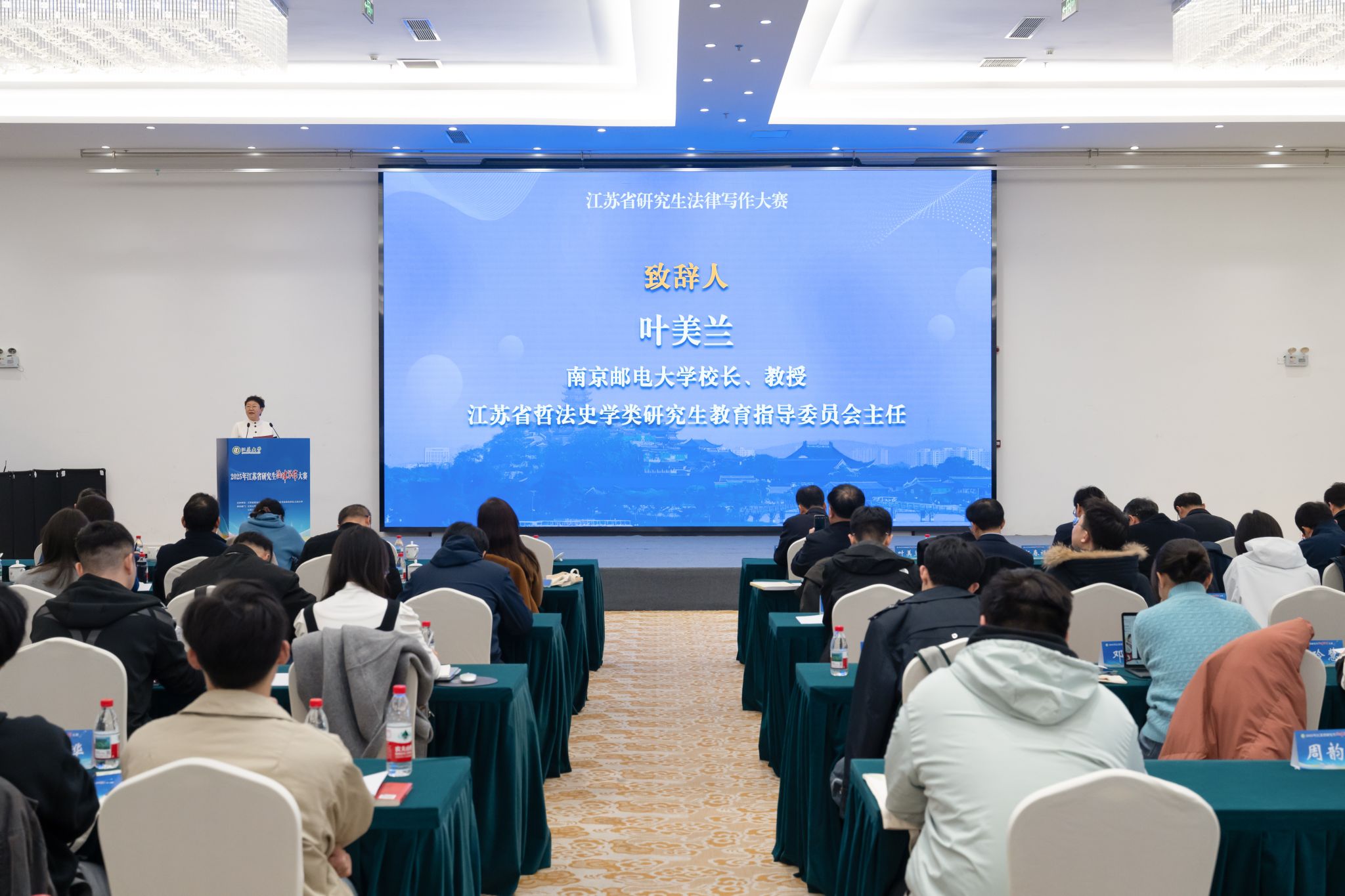 江苏省人民政府参事,江苏省法学会副会长、学术委员会主任,中国法学会法理学研究会副会长、江苏省法学会法学教育研究会会长夏锦文,江苏省哲法史学类研究生教育指导委员会主任、南京邮电大学校长叶美兰,江苏省哲法史学类研究生教育指导委员会委员、开云足球体育_开云足球(中国)党委书记李洪波,江苏省高级人民法院研究室副主任高荣超出席会议并在开幕式上致辞。