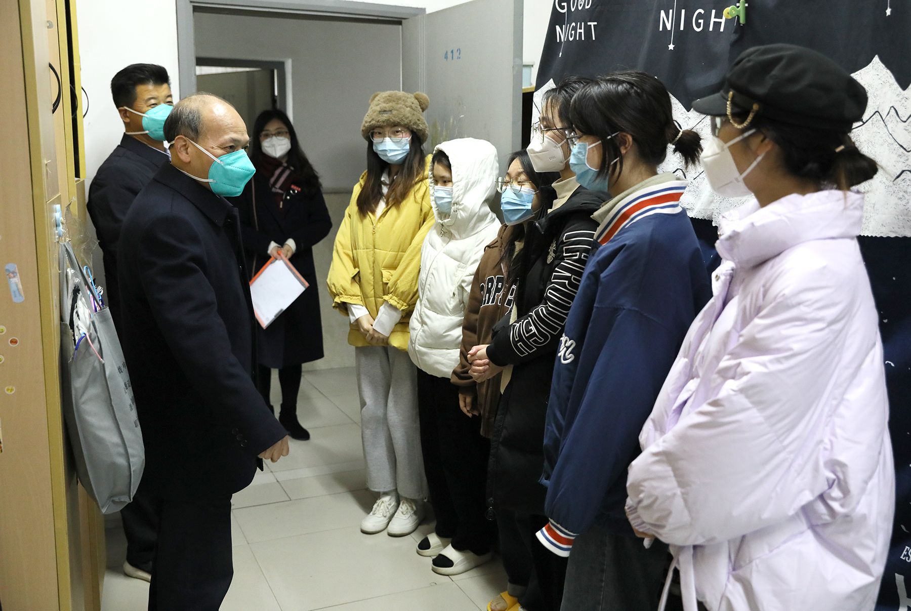 走访中,颜晓红与同学们亲切交谈,详细了解同学们在学习、就餐、住宿、生活需求等各方面情况,关心留校学生的健康、学习和生活状况。颜晓红叮嘱同学们当好自身健康的第一责任人,做好个人防护,相互关心帮助;希望同学们能够充分利用寒假留校时间加强学习,提升自我,架好中外友谊桥梁;预祝同学们在教师资格证面试和实验成果等方面取得优异成绩。
