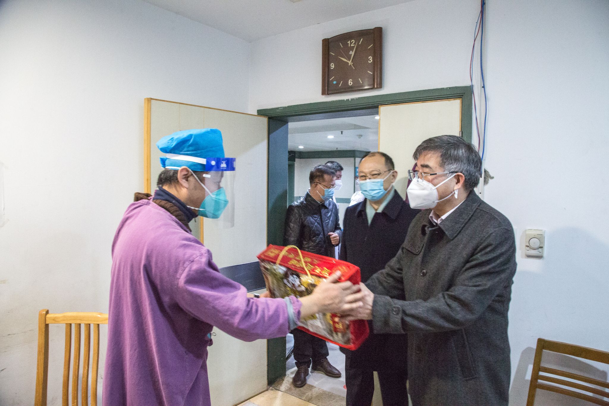 寅虎辞旧岁,卯兔迎新春。1月22日上午,农历兔年大年初一,校党委书记袁寿其,校党委常委、副校长、院党委书记张济建,来到附属医院看望慰问春节期间坚守在门诊一站式服务台、急诊中心、检验、药房等一线岗位的医务人员,送去新春的问候和真挚的祝福,感谢他们默默无闻的无私奉献,希望他们注意身体,认真值守,确保春节期间的医疗保障服务安全有序运转,以实际行动为广大人民群众健康保驾护航。