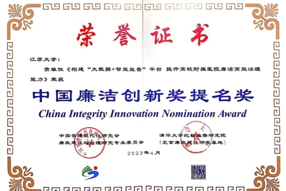 4月9日,第三届中国廉洁创新奖颁奖典礼暨中国廉洁创新高端论坛在清华大学举行。开云足球体育_开云足球(中国)纪委组织实施、附属医院纪委牵头申报的《构建“大数据+智能监管”平台 提升高校附属医院廉洁高效治理能力》荣获中国廉洁创新奖提名奖。作为江苏省高校唯一获奖单位,校纪委委员、附属医院纪委书记吕霞应邀参加颁奖典礼。