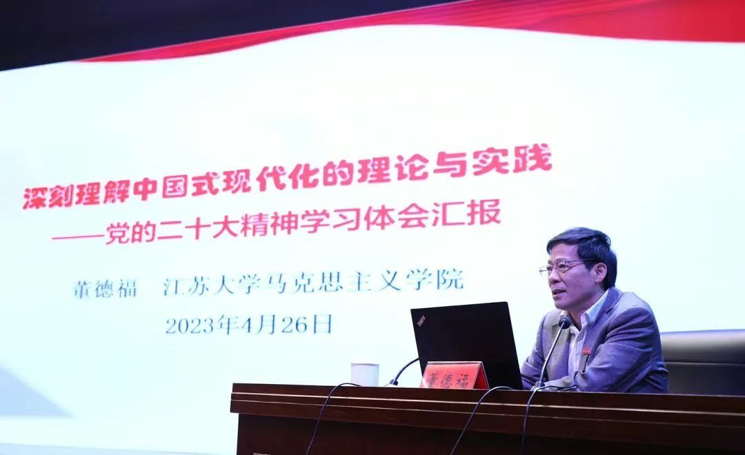 开班式后,马克思主义学院董德福教授以《深刻理解中国式现代化的理论与实践——党的二十大精神学习体会汇报》为题作第一次集中学习会专题报告,系统阐述了中国式现代化的科学内涵和时代价值,为正确理解中国式现代化、全面贯彻落实党的二十大精神作了深入浅出的讲解。