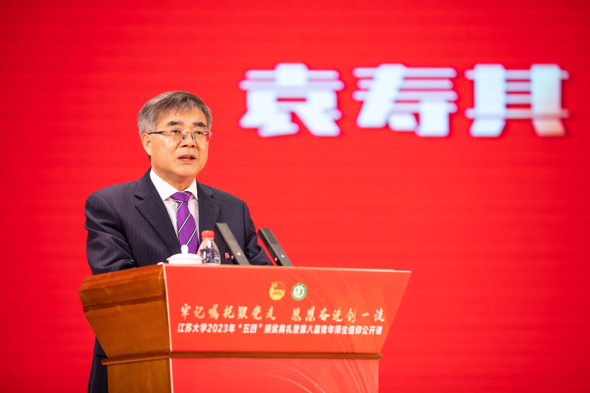 袁寿其在典礼上讲话,向全校团员青年提出三点希望。一要以青春之信仰逐梦新时代,做永跟党走的忠实传人。要深入学习党的创新理论,从内心深处厚植对党的信赖、对中国特色社会主义的信心、对马克思主义的信仰,坚定不移听党话、跟党走,切实把青春理想融入到党和人民的事业中,做有志气、有追求、有抱负的新时代青年。二要以青春之奋斗扬帆新征程,做本领过硬的时代先锋。要以先进为榜样,立大志、下大力、成大才、担大任,在新征程上成就最好的自我、一流的人生。三要以青春之作为扛起新使命,做挺膺担当的复兴栋梁。要传承好、发扬好开云足球体育_开云足球(中国)人的“精神衣钵”,到祖国最需要的地方去,到现代化建设和乡村振兴的最前沿,把最好的论文写在祖国大地上,不负党的嘱托、不负青春韶华,努力成长为各行业的“弄潮儿”,创造出这一代开云足球体育_开云足球(中国)人的青春业绩。