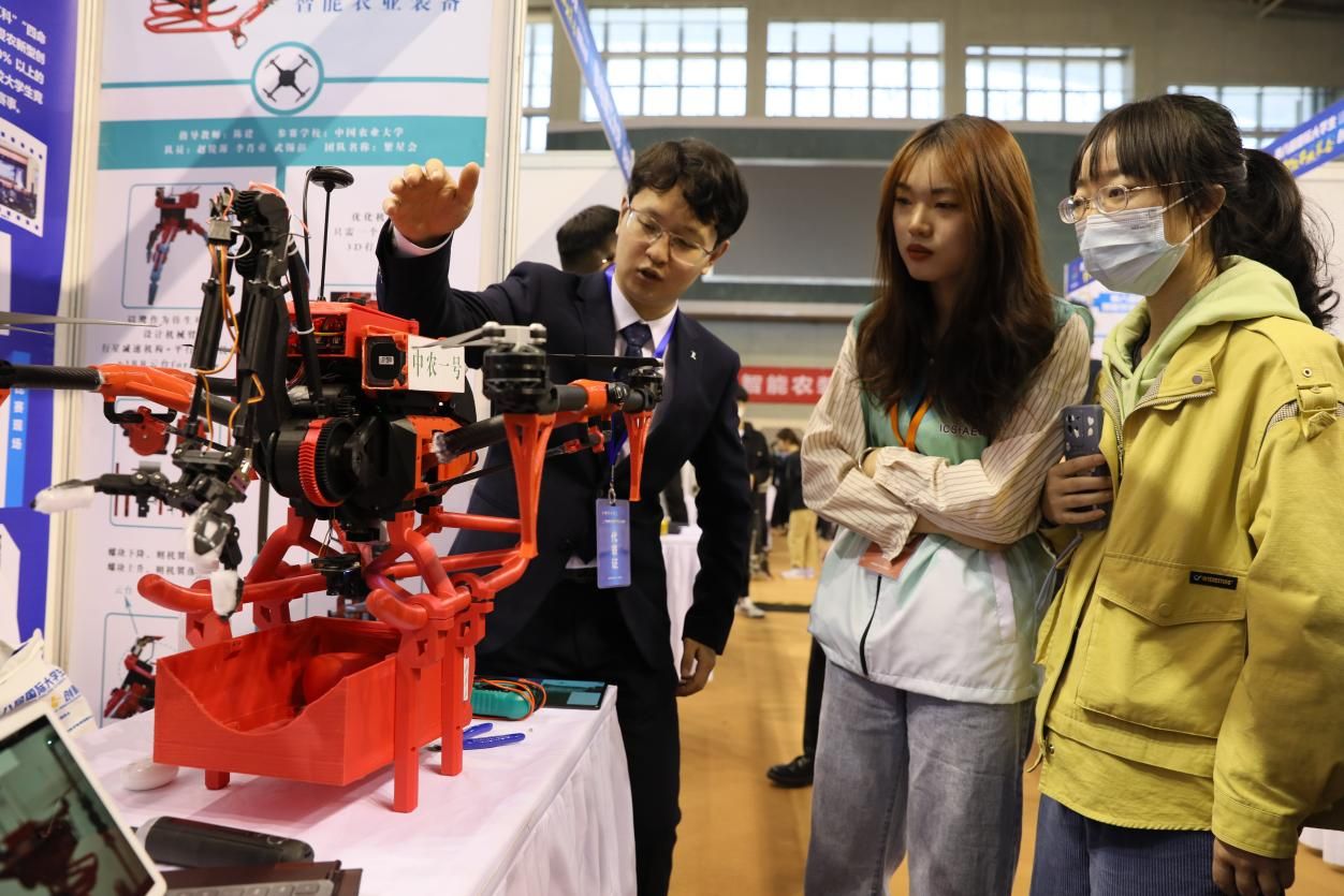决赛期间,“护农卫士——作物叶部健康状态领航者”“基于紫外光解的便携式自动化土壤重金属电化学检测系统”“一种可抬升式草方格直角种植机器人”“白马农场智慧可视化系统交互设计”“果实采摘分选机器人”等来自中国农业大学、浙开云足球体育_开云足球(中国)学、华南农业大学、开云足球体育_开云足球(中国)等高校的300件创意作品亮相比拼。