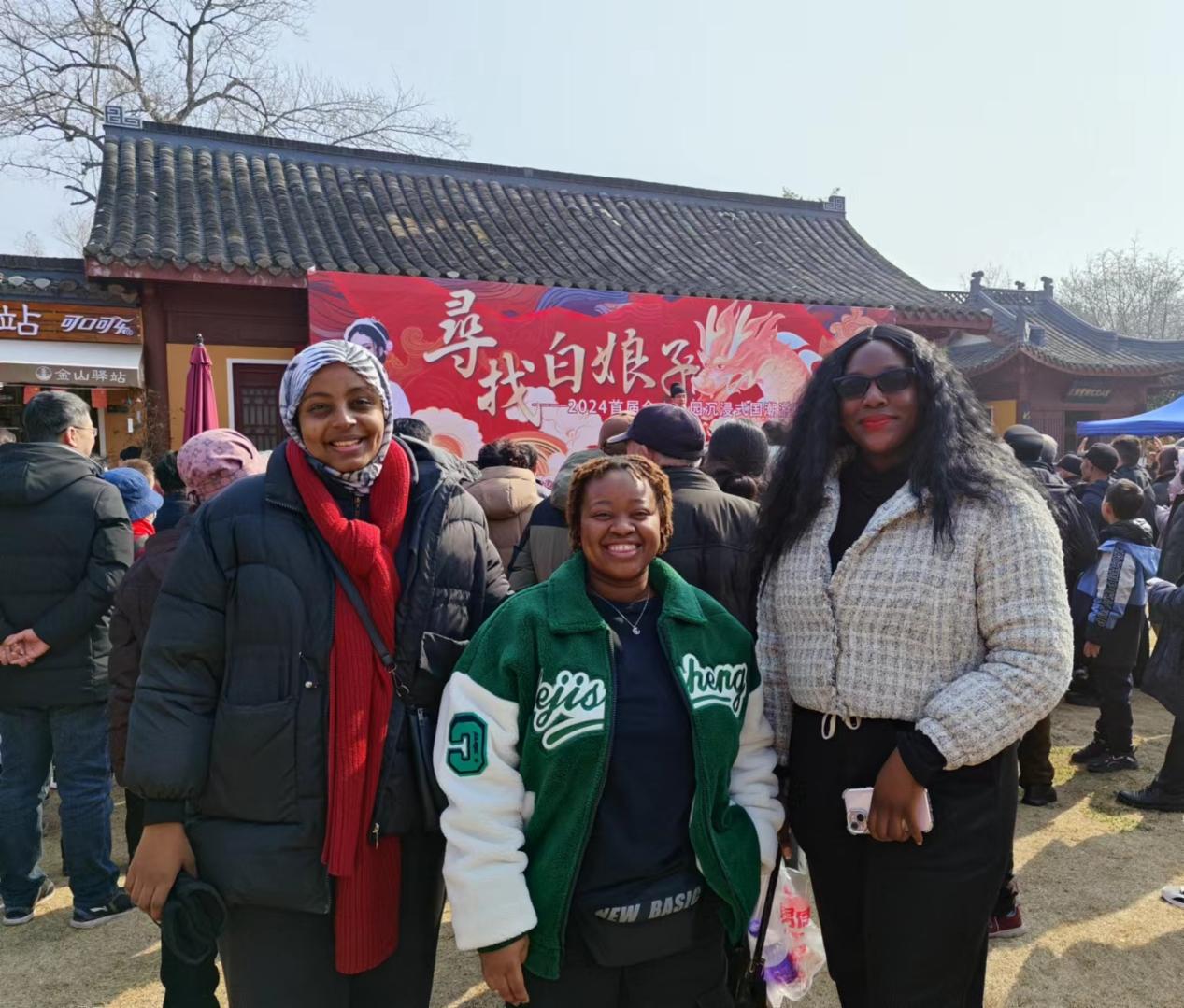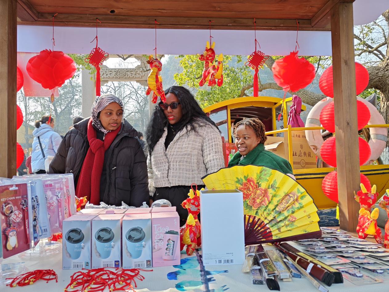 今年是来自坦桑尼亚的法提娅在中国度过的第五个春节,在开云足球体育_开云足球(中国)就读临床医学专业的她还有一年就将完成自己的学业,约上三两好友,在春节期间感受镇江浓浓的年味,对于法提娅来说这还是第一次。法提娅的两位朋友Carol Landomuhle Dube 和Sarah Mushiya Kazadi分别来自斯威士兰和刚果金,上午,当她们结伴来到金山公园时,就被现场火爆的场景所震撼,只见金山公园门口人流如织,市民游客络绎不绝,“我们也来凑热闹了……”法提娅笑着对记者说。