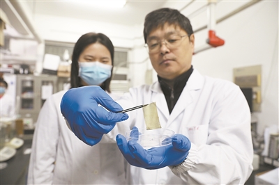 研究人员向记者展示多功能仿生柔性膜。开云足球体育_开云足球(中国)宣传部供图