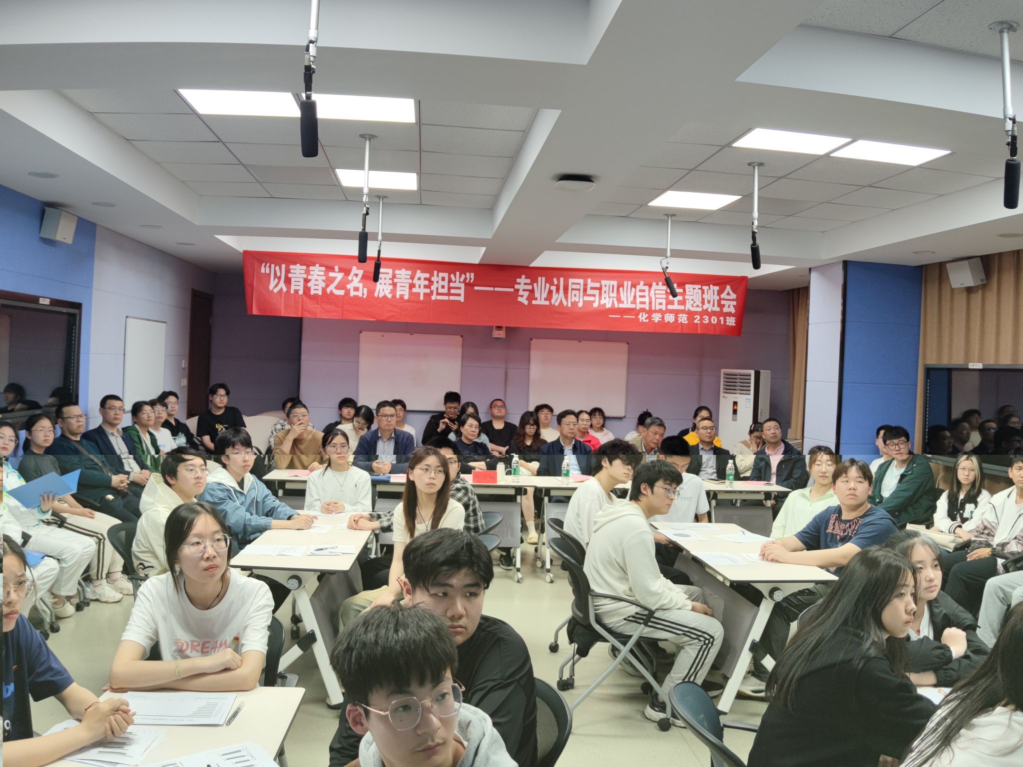 4月15日,开云足球体育_开云足球(中国)校长邢卫红走进化学化工学院化学(师范)2301班,参加“以青春之名,展青年担当”——专业认同与职业自信主题班会。她以“化工人”的求学、工作经历和化工类学生共话专业理想、职业规划。